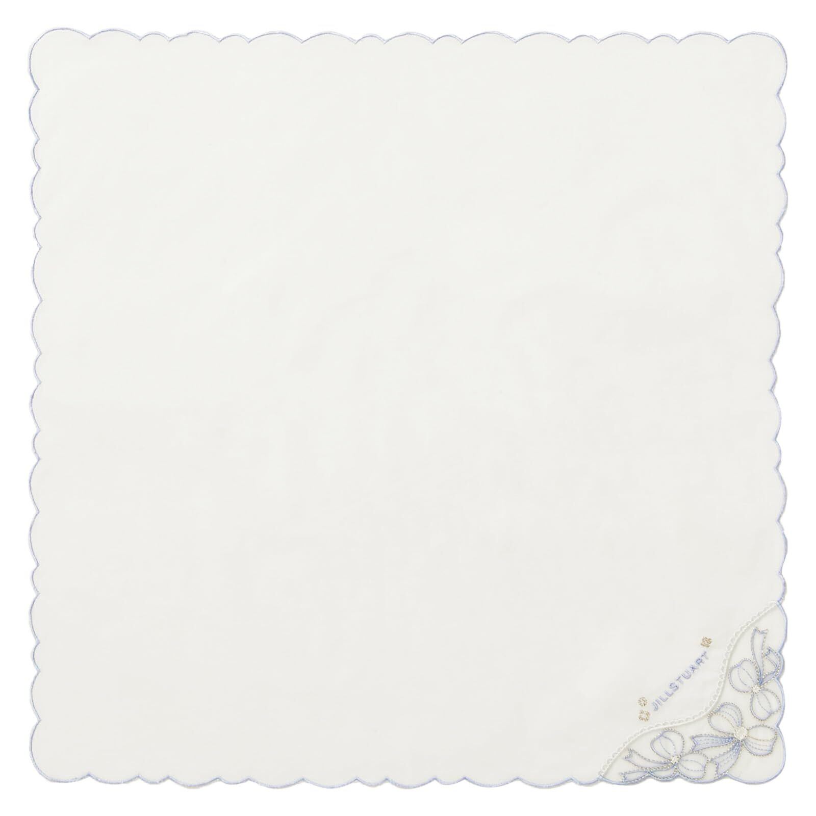 【JILL STUART(ジルスチュアート)のレディース刺繡ハンカチ】波状のフチとリボンの刺繍がキュートなコーナー刺繡ハンカチ。プレゼントにもおすすめな一枚です。