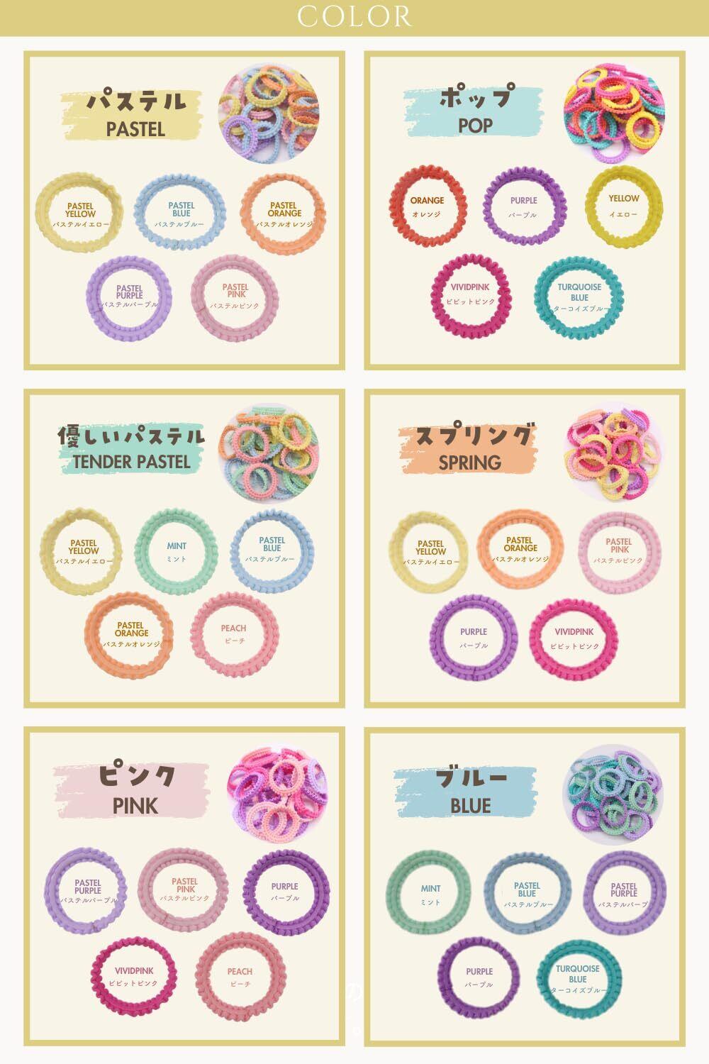 【選べる6カラー!結ぶだけで可愛いデザイン】 パステル・ポップ・優しいパステル・スプリング・ピンク系・ブルー系・ブラックの豊富なカラーバリエーション。シンプルだけど結ぶだけで可愛くなるカラー展開で、その日の服や気分に合わせて楽しめます。