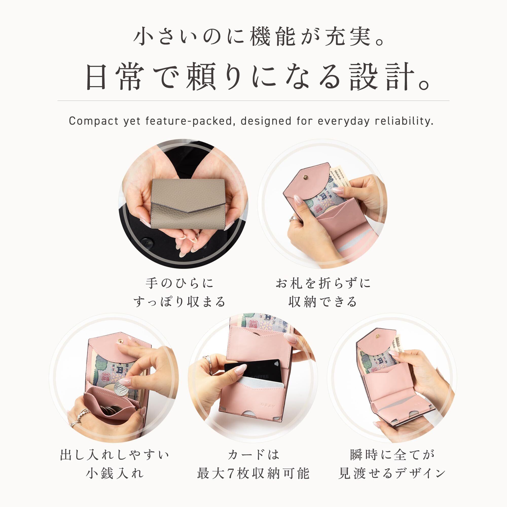 【傷や汚れに強いシボ本革】柔らかい感触が手に馴染みとっても使いやすく持ちやすい。 厳選された上質な本革を採用し、傷・汚れに強いシボ加工を施しています。 上品で高級感溢れる美しさと素材の強さを兼ね備えたミニ財布。