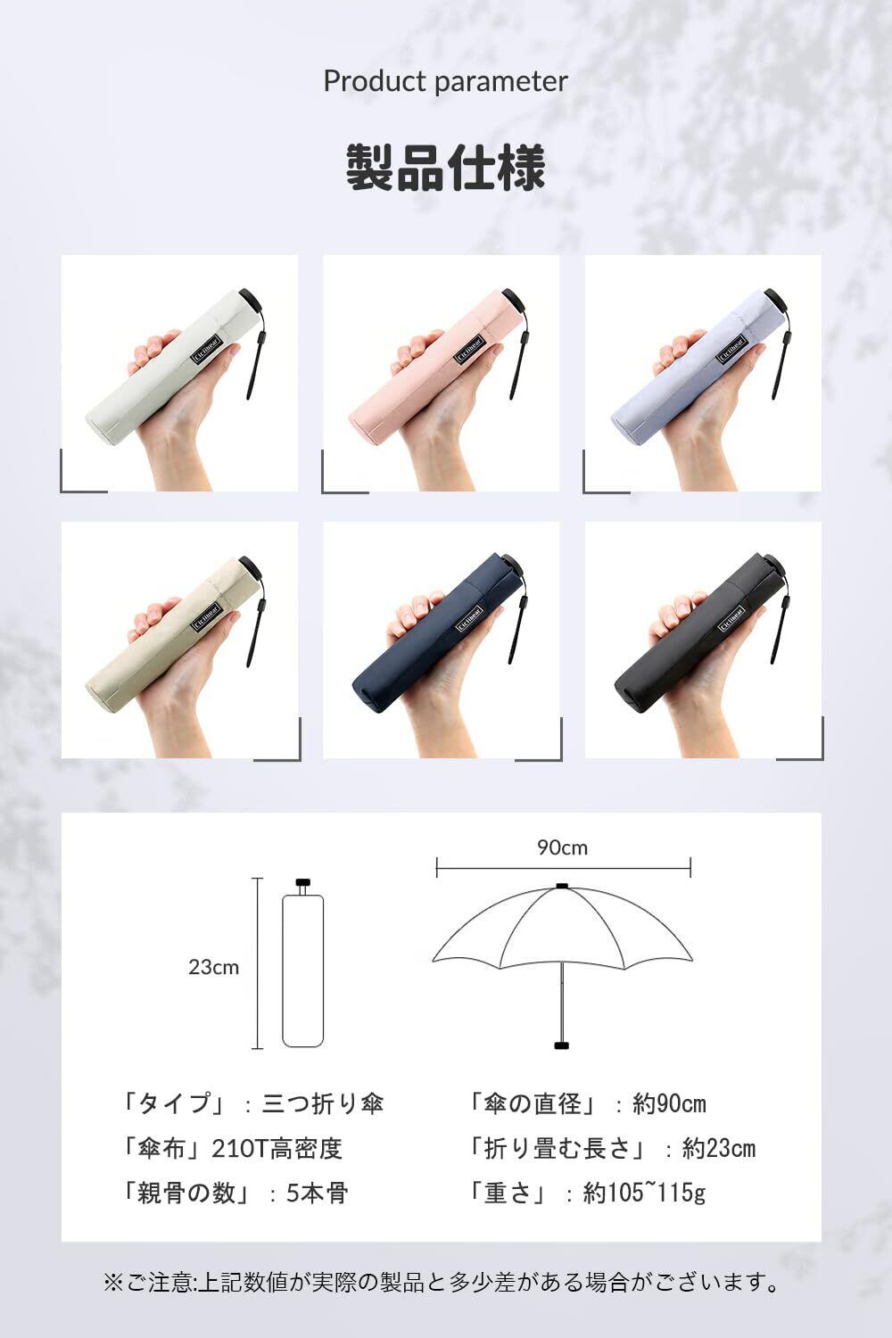 【超小型・軽量・携帯便利】コンパクトさを追求した3段式折り畳み傘が登場!折りたたみ時の長さは約23cm、重さは約105g~125gで、バッグにすっぽりと収納することができます。場所を取らずに保管することが出来ます!毎日の通勤や通学にもぴったりです。