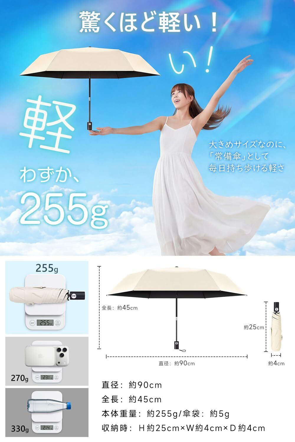 【人気商品】日傘 3秒でたためる傘 JIS認証 完全遮光 UPF50+ 折りたたみ傘 紫外線遮断 遮熱 晴雨兼用 ワンタッチ自動開閉 軽量 コンパクト 折り畳み日傘 耐風 撥水 収納袋付 レディース メンズ 男女兼用