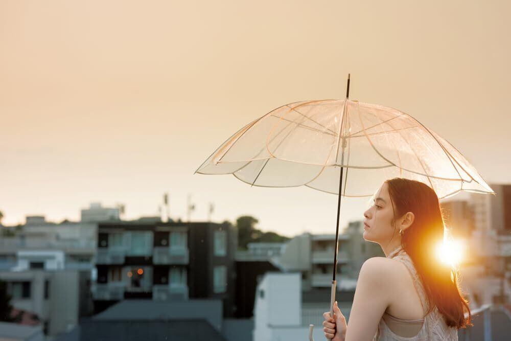 【2022最新】ビコーズ because 長傘 58cm ビニール傘 雨傘 花びら 花の形 雑誌掲載 女性 レディース おしゃれ ブラウン フラワーアンブレラ クリアアンブレラ/カラーパイピング