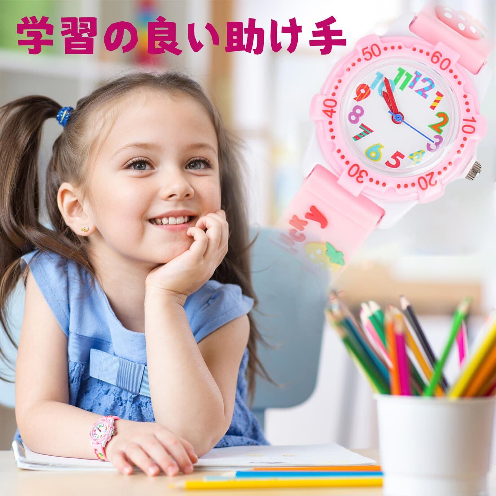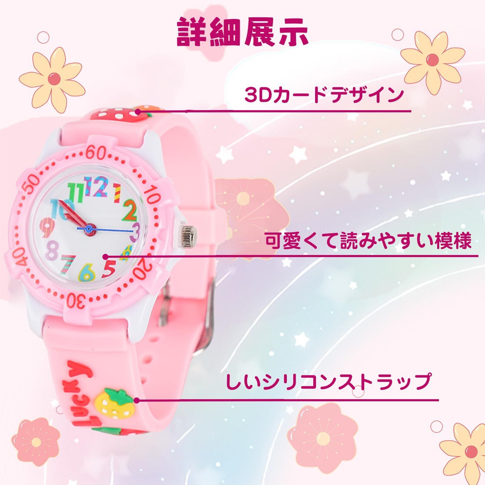 女の子 ガールズ キッズ腕時計 子供 通学 誕生日 腕時計 恐竜 軽量 動物柄 可愛い 通園 ウォッチ スポーツ 日常 ピンク苺
