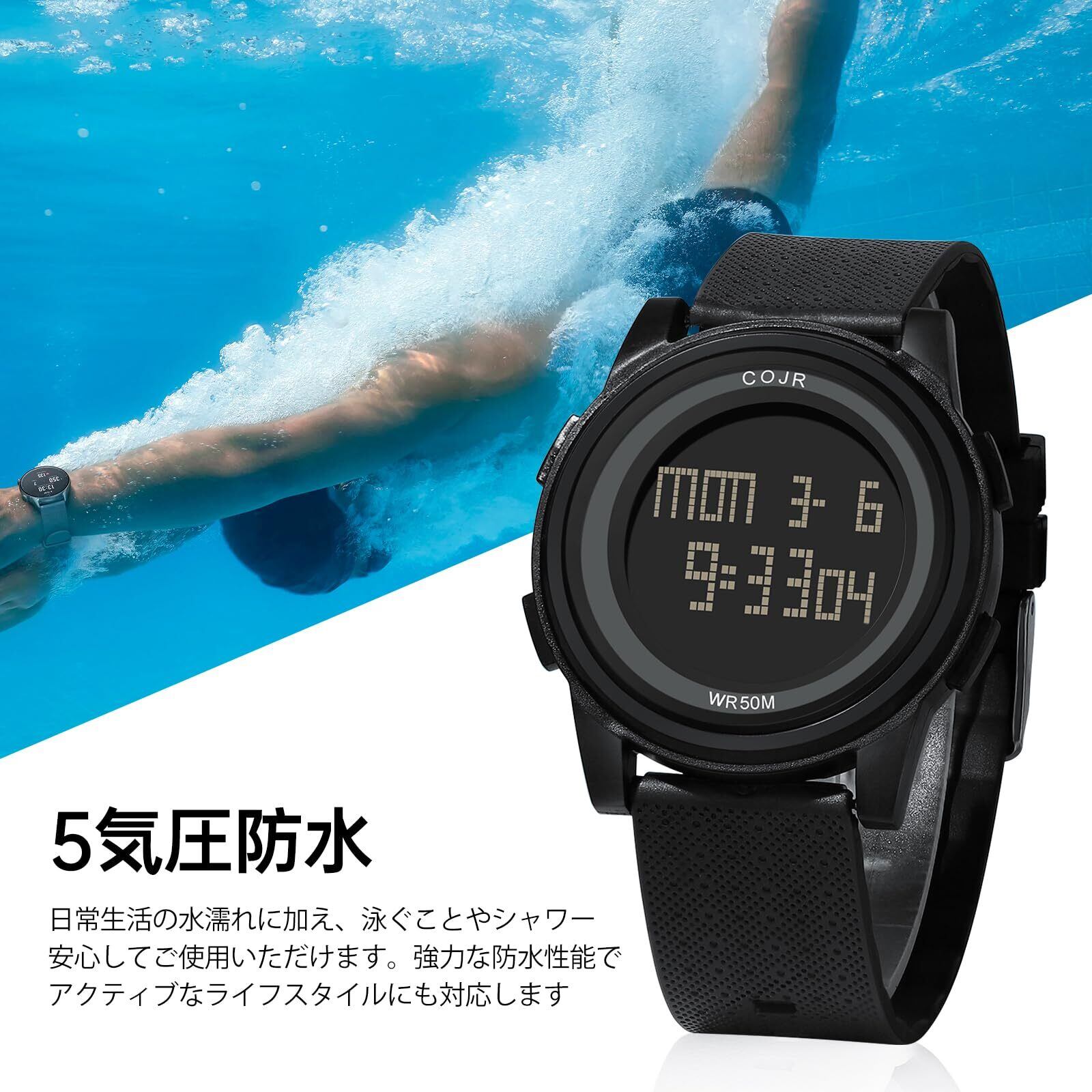 腕時計 デジタル ランニングウォッチ 超薄型腕時計 5ATM防水 多機能付き メンズ スポーツウォッチ 日付 曜日 アラーム ストップウォッチ LEDライト デュアルタイム シンプル アウトドア おしゃれ 男女兼用 文字が大きくて見やすい (ブラック)