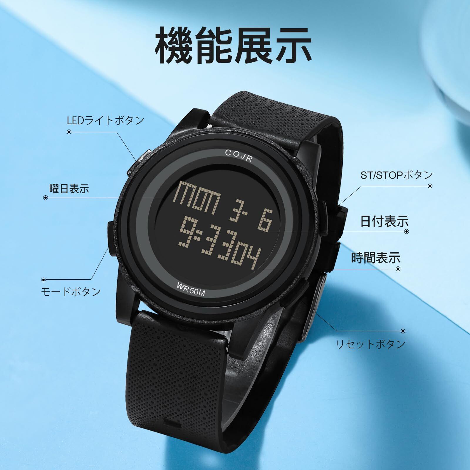 ⌚ [超薄型 腕時計 デジタル] シンプルで視認性の高い大画面デザインを採用したデジタル腕時計 メンズは、時間を一目で確認できます。ケースの厚さはわずか9mmの超薄型設計で、装着感が抜群です。さらに、LEDバックライトを搭載しているため、暗い場所でも簡単に時間を確認でき。この腕時計 メンズ デジタルとランニングウォッチは、機能性とコストパフォーマンスを兼ね備えた一品で、幅広い方におすすめです。