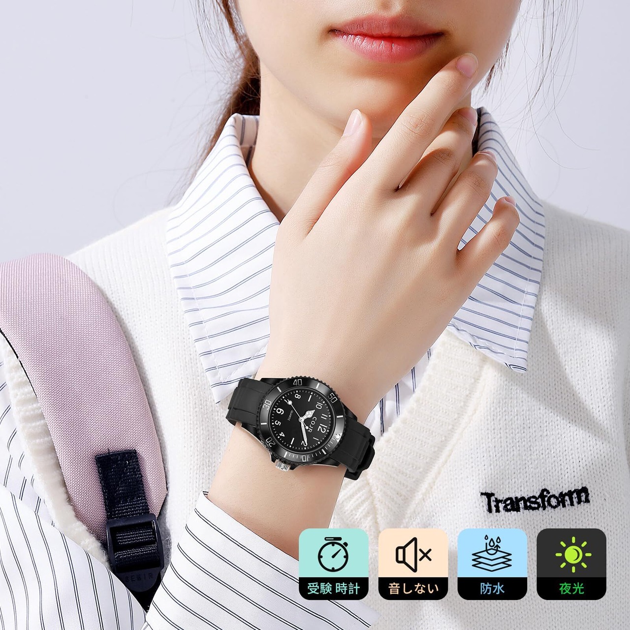 【快適な装着感・長時間対応】柔らかく肌に優しいシリコンバンドを採用した受験 時計は、軽量で長時間着用しても疲れにくい試験用腕時計です。秒針 音しない 腕時計 受験設計のため、静かな試験会場でも安心して使用でき、集中力を維持できます。