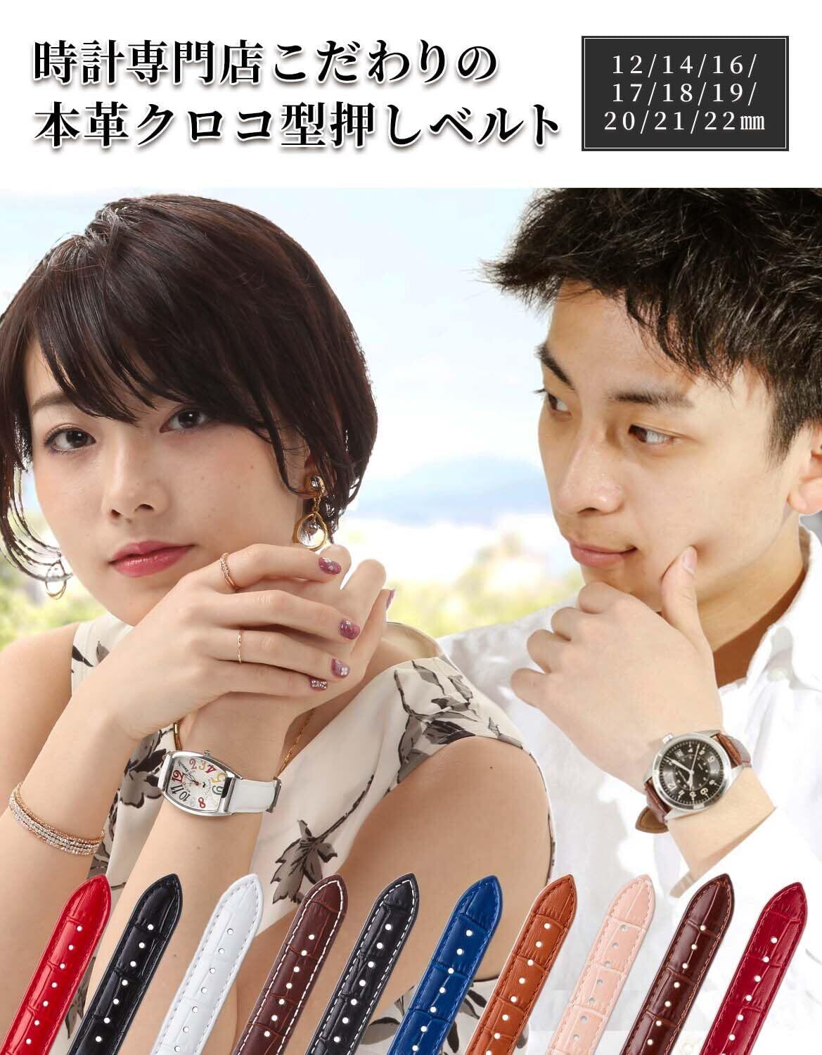 カルム 腕時計 ベルト 本革 クロコ型押し レザー 時計 バンド 交換ベルト 12㎜ ~ 22㎜ 交換説明書付き