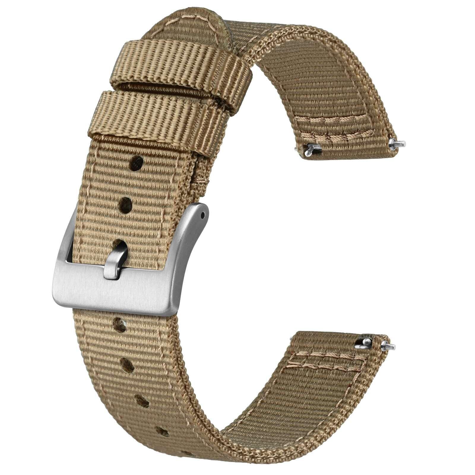 ナイロン時計バンド ツーピース・ミリタリー腕時計バンド ブラッシュド尾錠 Quick Release 18mm 19mm 20mm 22mm 24mm交換ベルト 男性用
