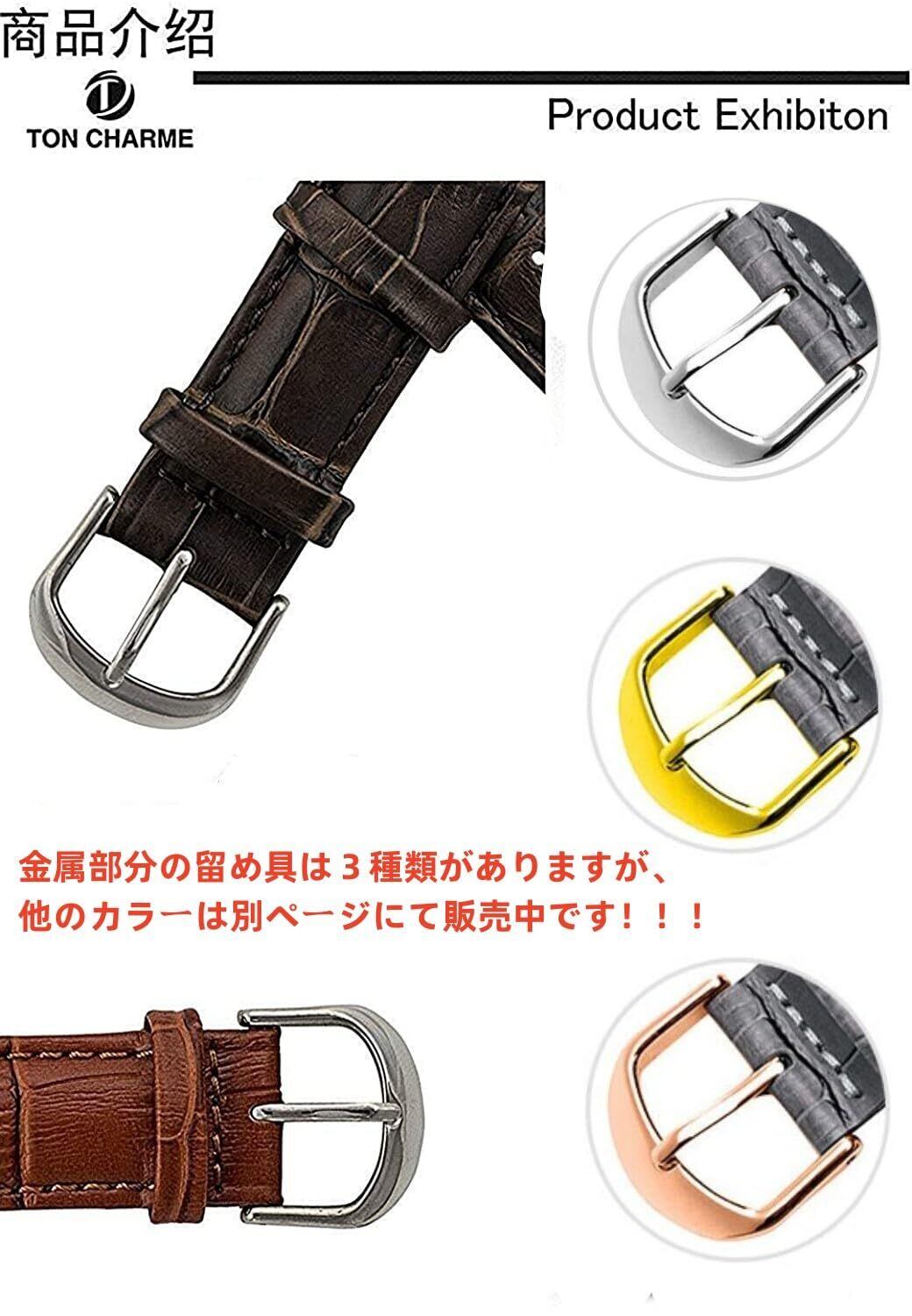 トンチャーメー 腕時計 ベルト 時計バンド 本革 カーフ レザー クロコ型押し 交換品 ピンク・ネイビー・ホワイト・レッド・パープル・ライトブルー 12-24mm