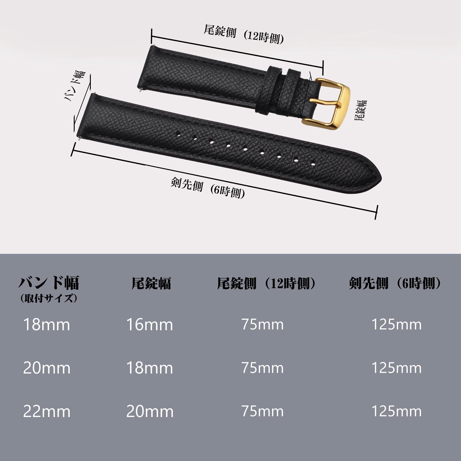時計バンド 18mm 20mm 22mm 16mm 19mm カーフレザー 腕時計ベルト 替えバンド Quick Release 両面本革 ビジネススタイル 交換べると