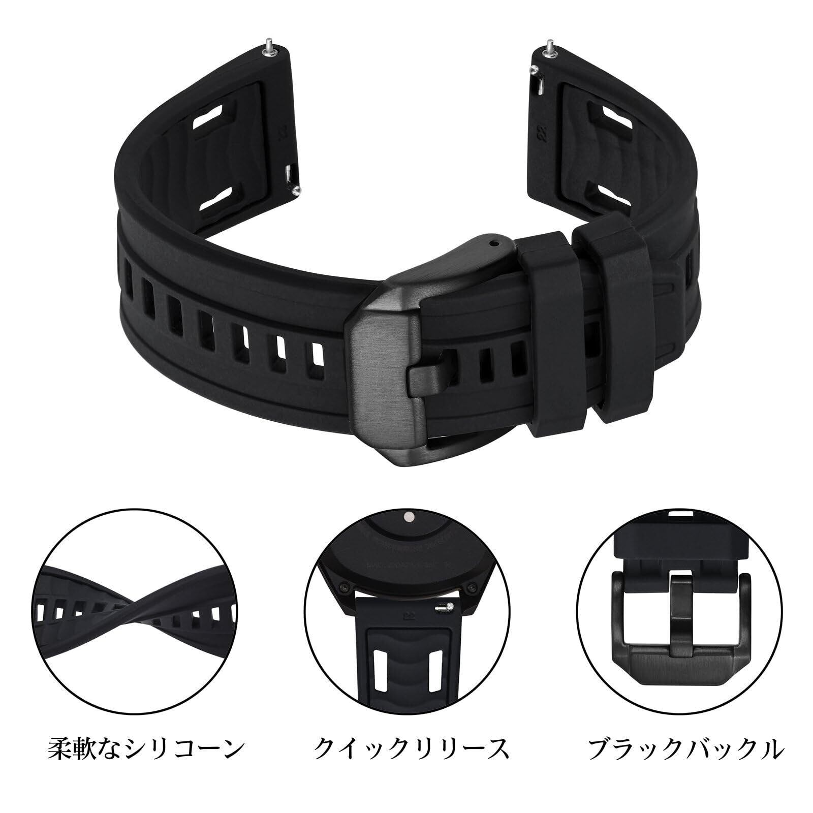 【2022最新】腕時計バンド20mm 22mm 24mmバイカラーシリコン時計バンド、Quick Release スポーツ防水交換ベルト、シルバー/ブラック尾錠