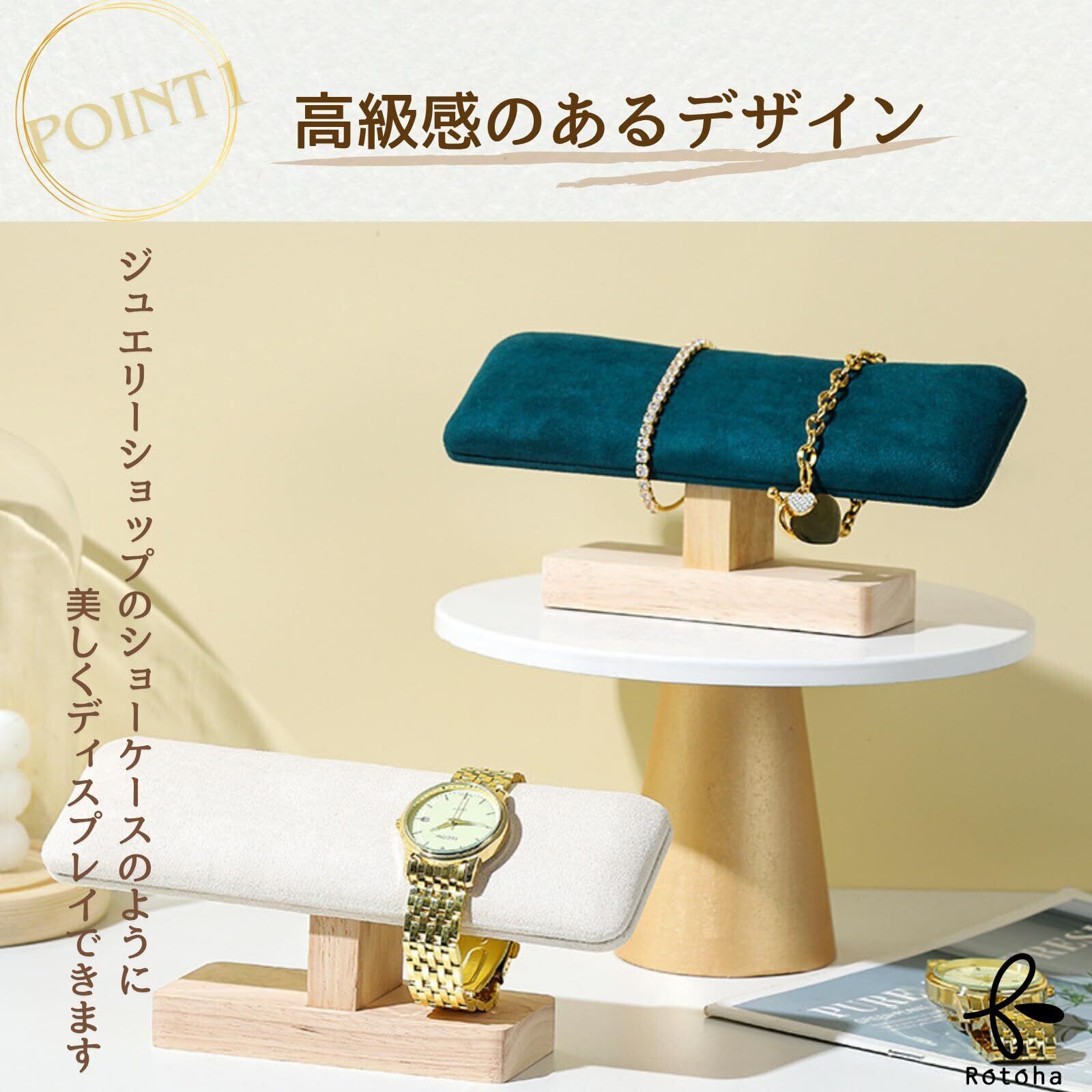 【優しく保護】クッション入りスエード調台座が腕時計やアクセサリーをやさしくホールドします。金属部分に触れず傷つけにくい構造です。大切な時計を長く使いたい方に最適です。