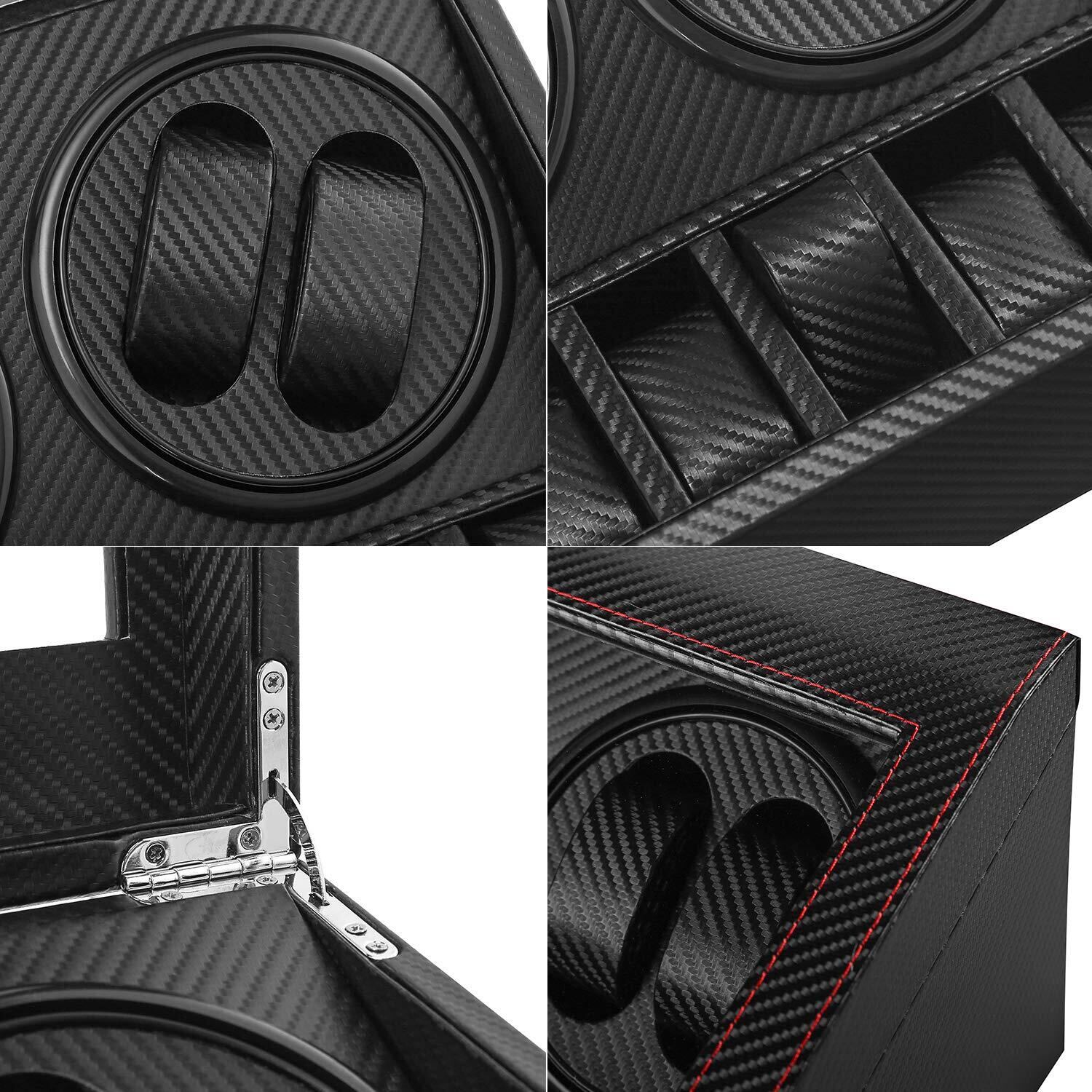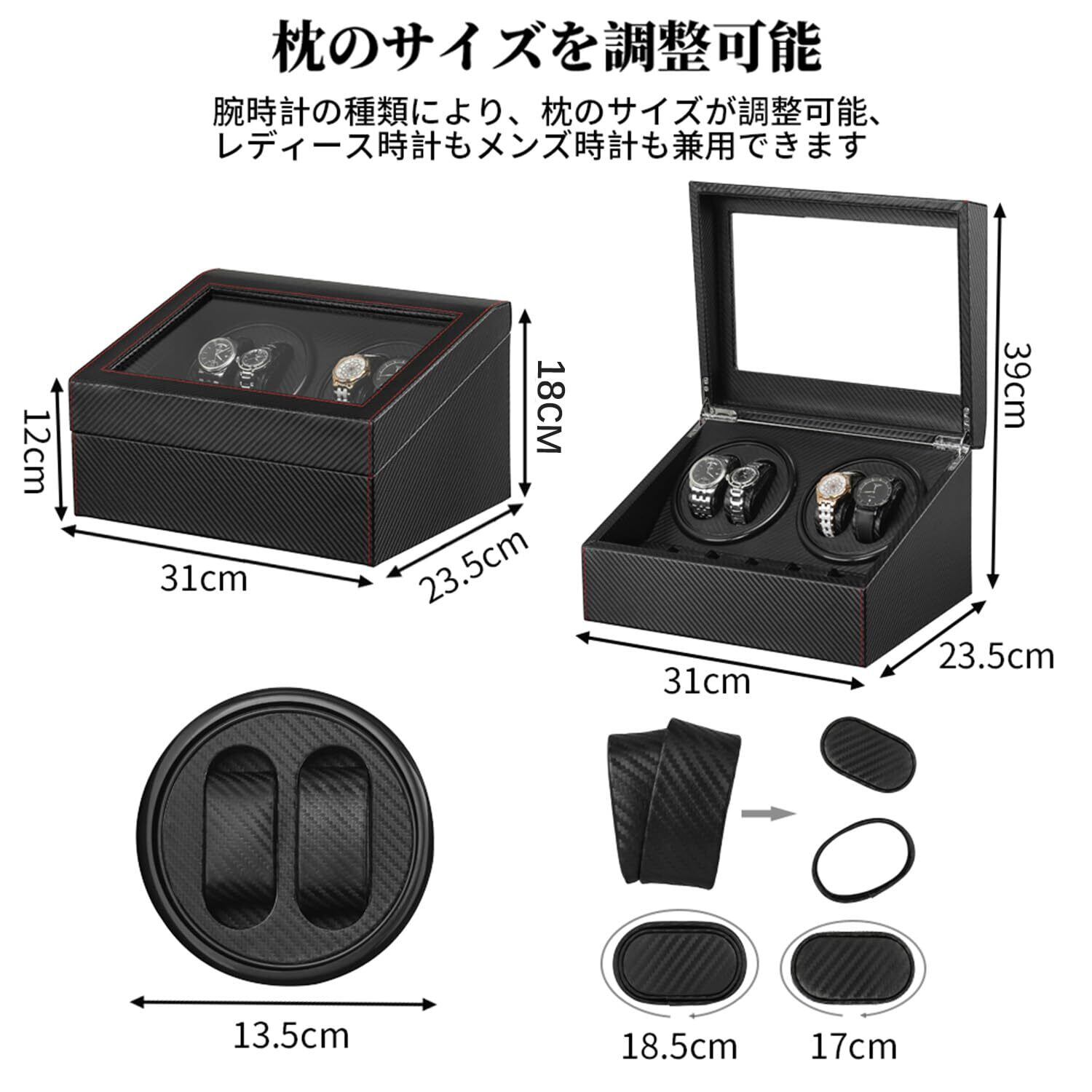 ワインディングマシーン(4本巻き+6本収納) ウォッチワインダー 自動巻きワインディングマシーン 日本製 マブチモーター 静音設計 高級 腕時計自動巻き上げ機 収納ケース 男女の腕時計は全部使えます (炭素繊維)