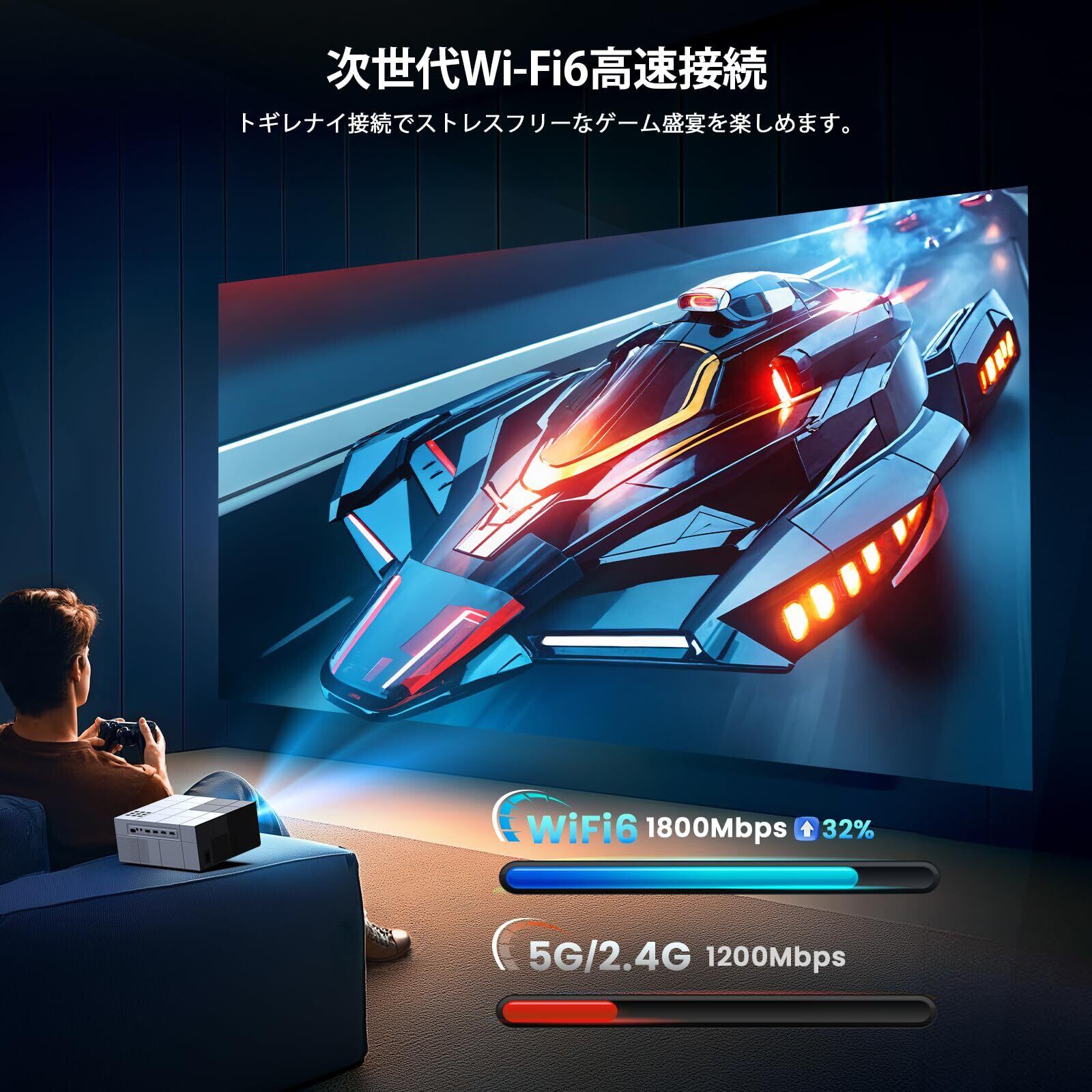【進級版Wi-Fi 6&双方向Bluetooth5.3】 先進のWiFi6技術を搭載し、5G WIFIの約2倍の動画出力速度で、もっと高速で安定したネットワーク接続を提供します。高画質な動画視聴、オンラインゲーム、遠隔学習など、すべてにおいて遅延のないスムーズな体験をお楽しみいただけます。また、双方向Bluetooth5.3搭載していますので、本製品Bluetoothでスマホ、iPodなどを接続できて、スピーカーとして利用可能です。家事をしながらGDP1W進化版プロジェクターから高音質の音質を楽しめます。市場初のWi-Fi 6+双方向Bluetooth5.3技術兼用のプロジェクターとして、より安定した快適な投影体験を実現します!