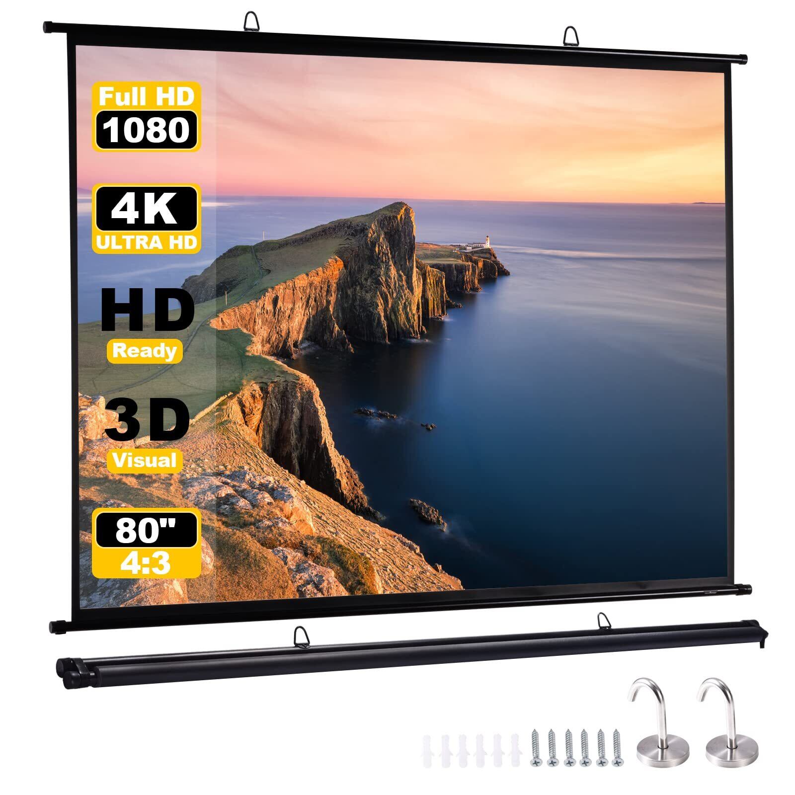 プロジェクター スクリーン 吊り下げ、スクリーン プロジェクター用、80インチ 4:3 ファイバーグラス、持ち運びや収納に便利なコンパクトサイズで、ホームシネマ、ビジネスプレゼンテーション、屋内外のエンターテイメントに最適なポータブルスクリーンです。