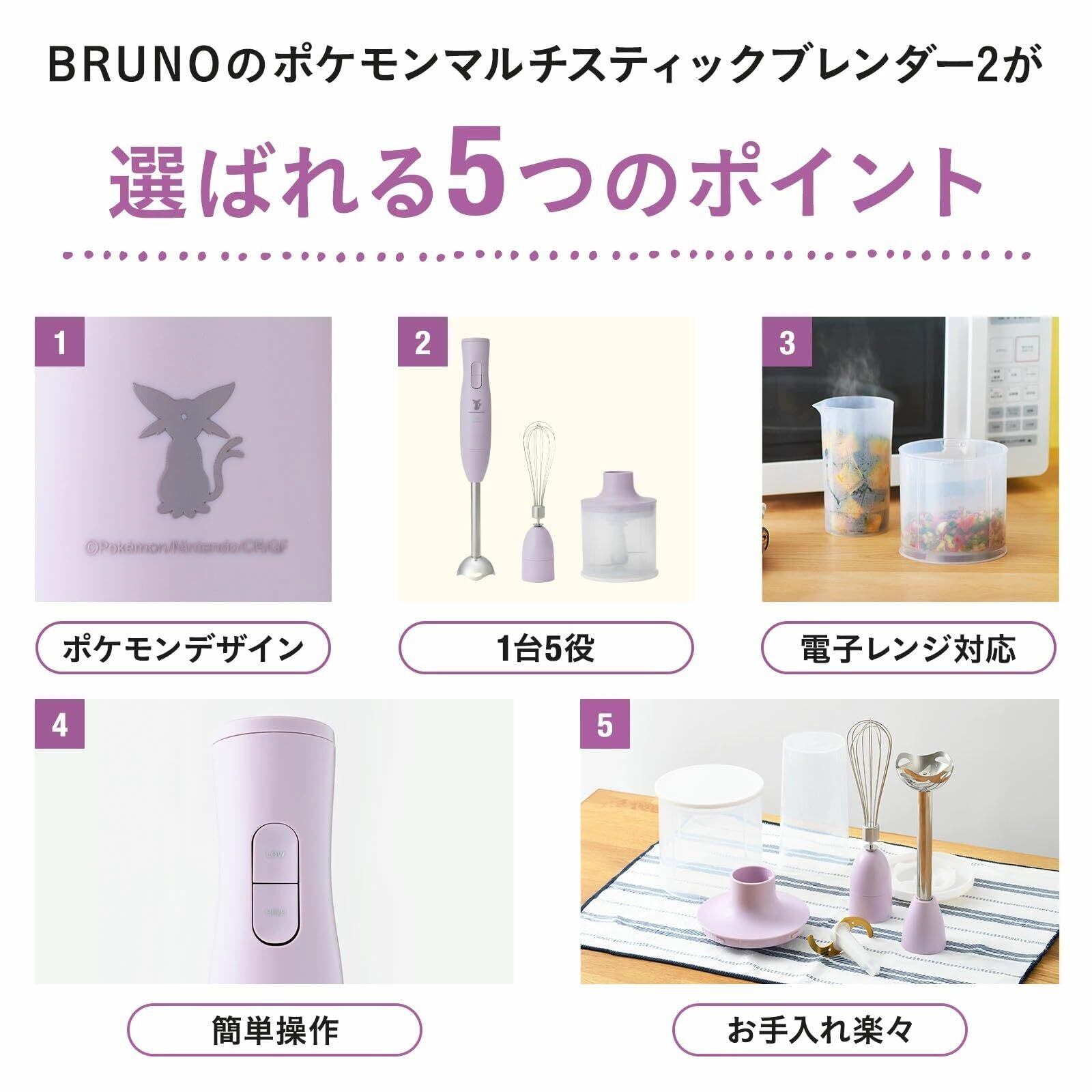 BRUNO ブルーノ イーブイ イーブイフレンズ マルチスティックブレンダー2 ハンドブレンダー ブレンダー ミキサー フードプロセッサー ポケモン エーフィ 離乳食 介護食 軽量 スリム コンパクト スムージー 氷OK 電子レンジ対応 食洗機対応 パープル BOE156-PU