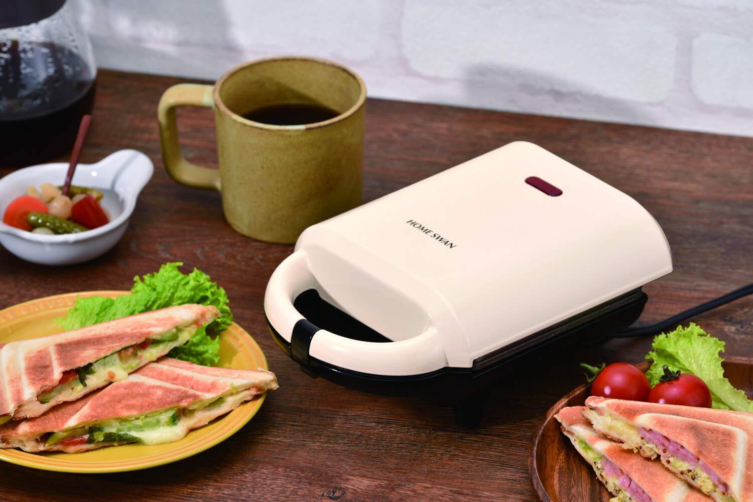 食パンの耳を切らずにそのまま使えるホットサンドメーカー。<br>シングルタイプなのでコンパクトサイズ。<br>プレートは離型性の良いフッ素樹脂塗装。