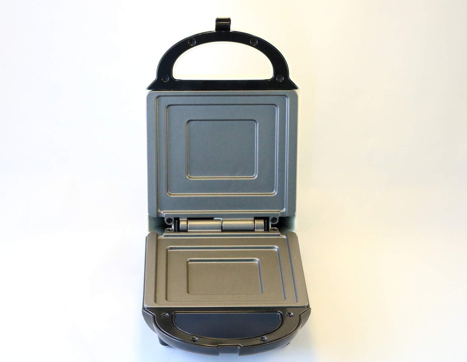 食パンの耳を切らずにそのまま使えるホットサンドメーカー。シングルタイプなのでコンパクトサイズ。プレートは離型性の良いフッ素樹脂塗装。