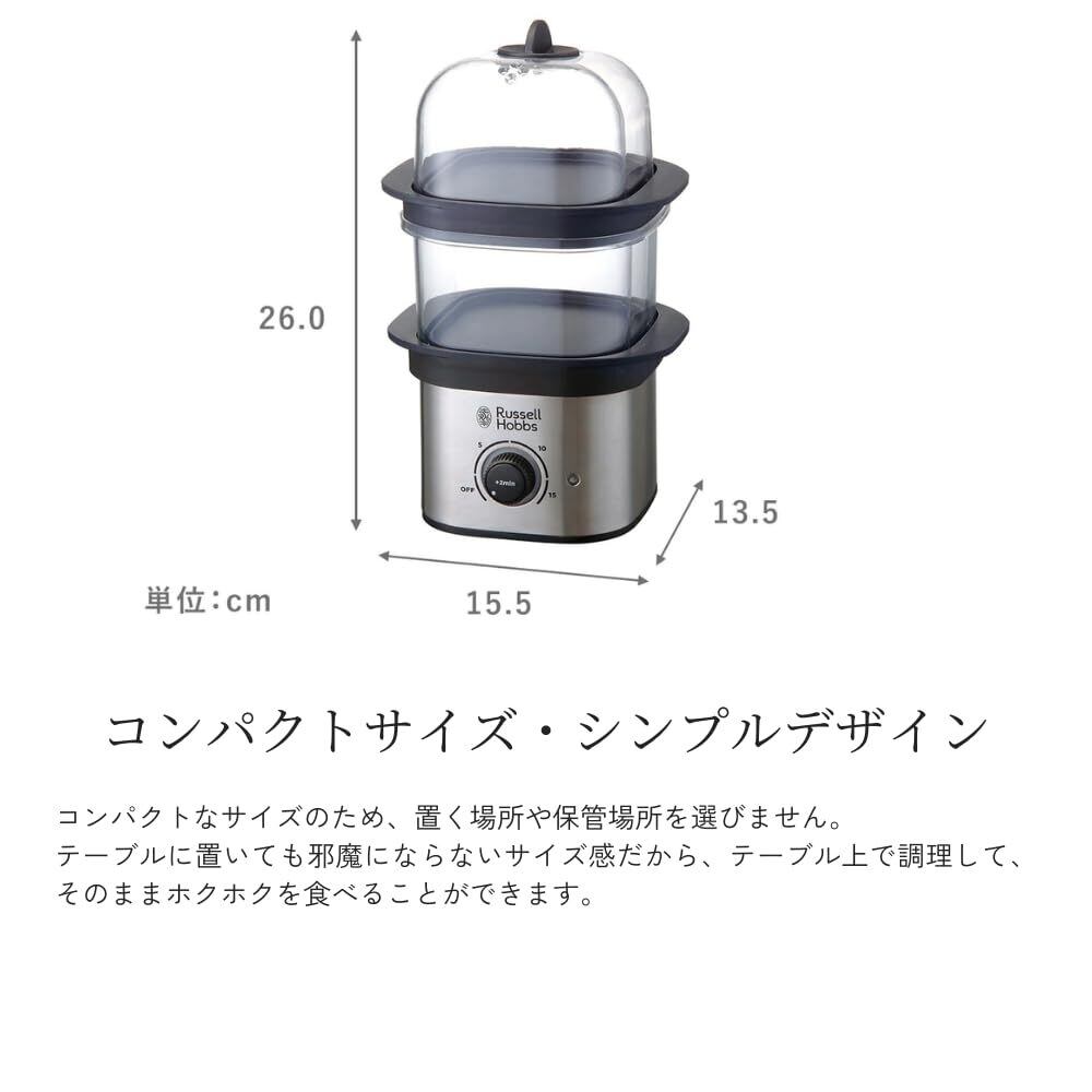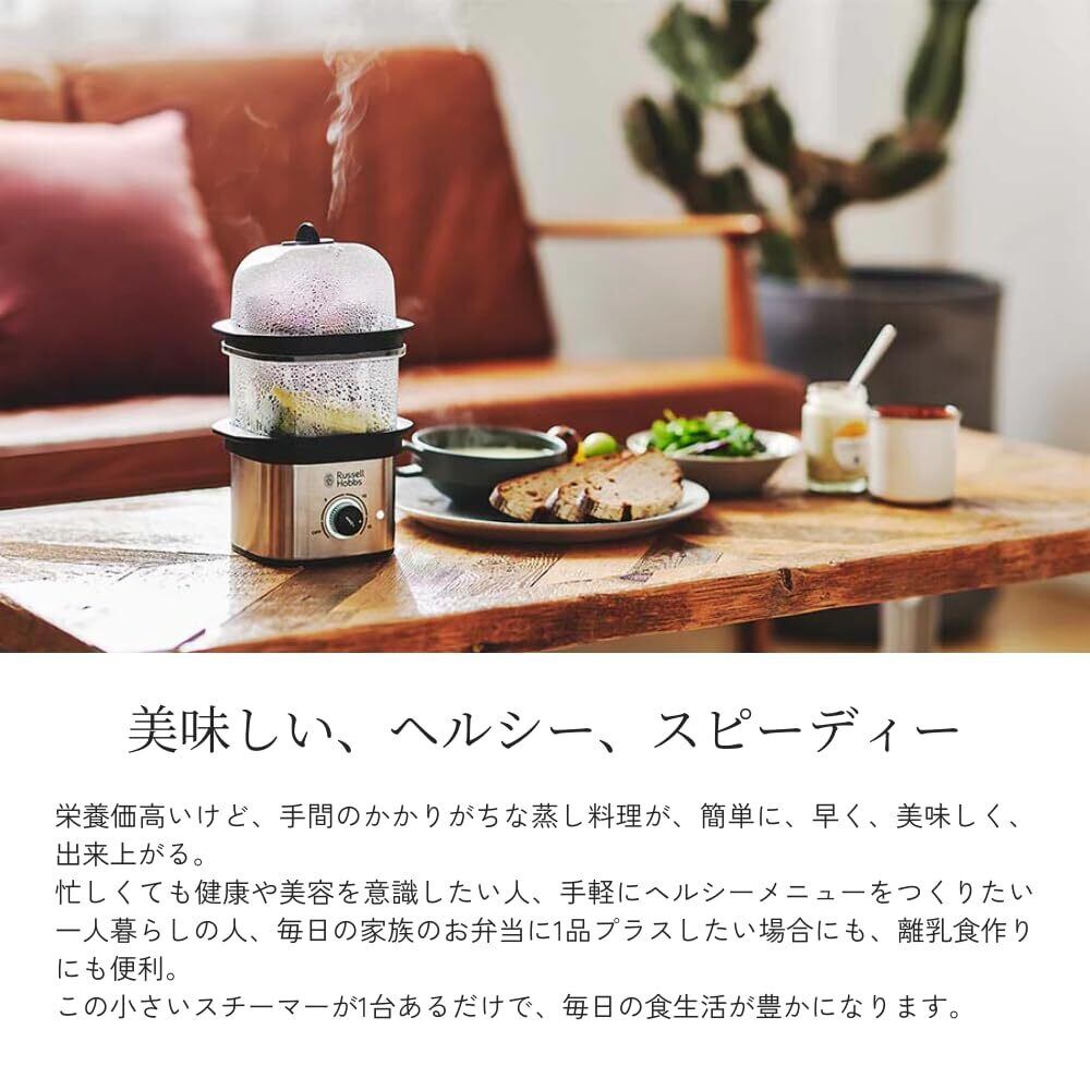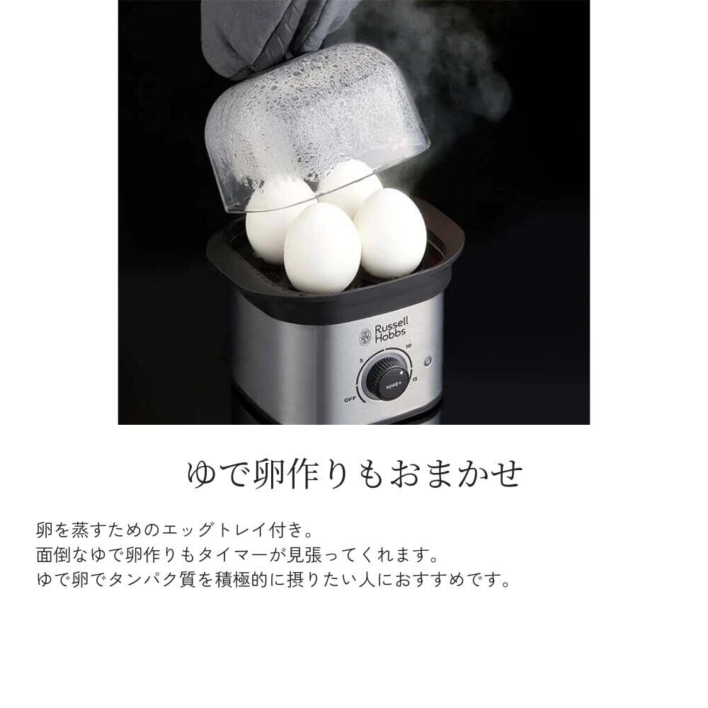 【2022最新】Russell Hobbs ラッセルホブス クイックミニスチーマー 3000JP 3ヶ月延長 蒸し器 フードスチーマー 蒸し料理 簡単 ゆで卵 エッグトレイ付き タイマー機能 お手入れ簡単