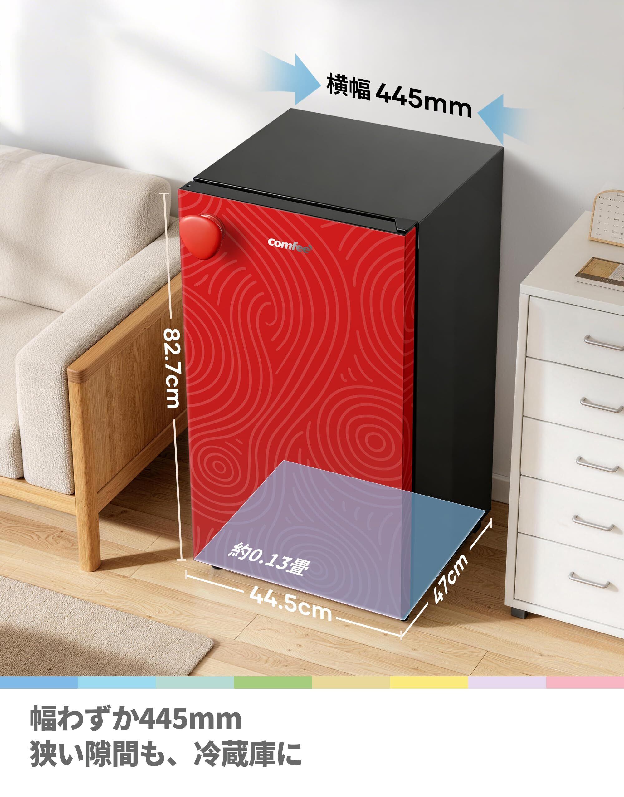 COMFEE' 冷蔵庫 88L 幅44.5cm 一人暮らし スリム Youniqシリーズ 右開き LED照明 3段階温度調節 省エネ 静音設計 RCD92RF1JPY(E) レッド