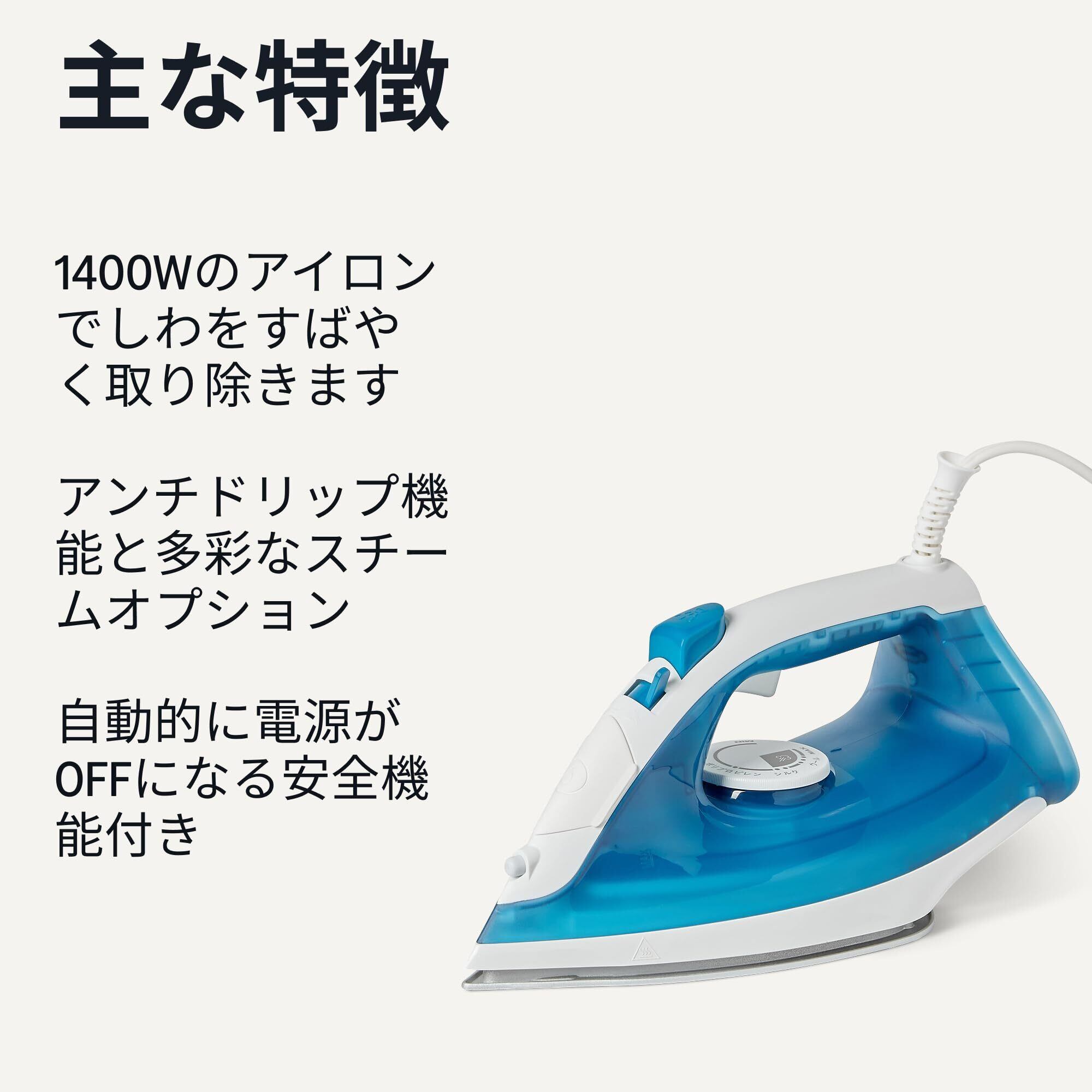 ベーシック スチームアイロン コード付き 霧吹き機能 1400W (タンク容量200ml) 26.7 × 11.4 × 18.3cm ブルー
