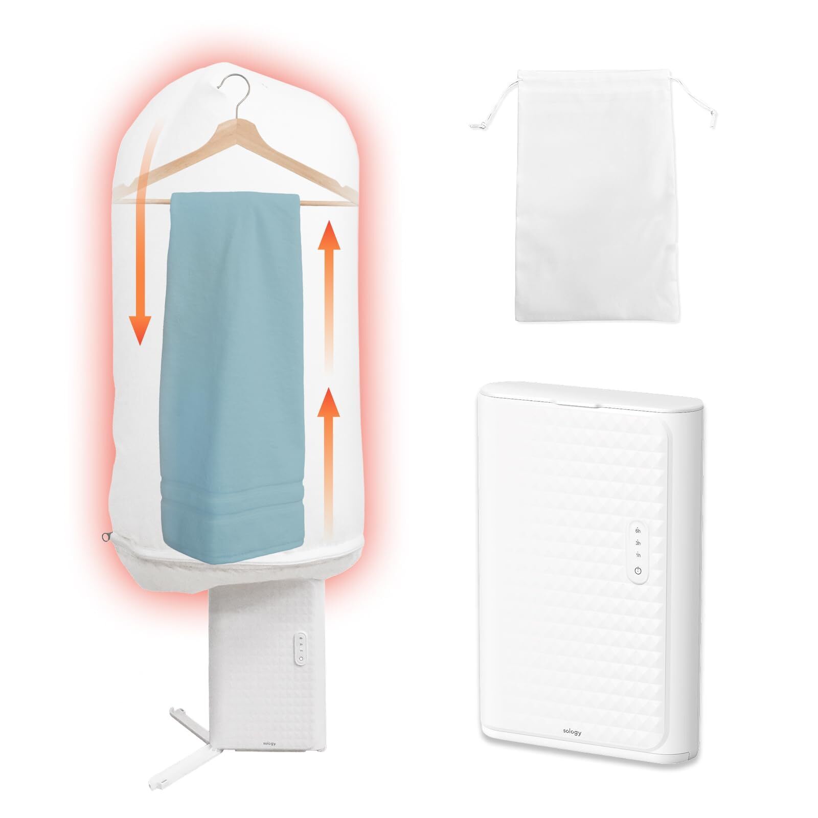 sology(ソロジー) ポータブル衣類乾燥機 夜間でも安心な静音設計 電気代1時間約4円 小型 折りたたみ 携帯型 温風 自動タイマー 靴下・下着・Yシャツ対応 旅行・出張・ホテルに最適 部屋干し・室内干し 生乾き対策 フック・収納袋付き コンパクト ホワイト 一人暮らし