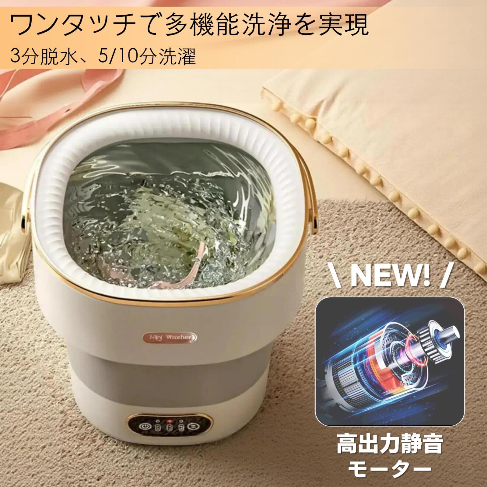 優れた洗浄力:小さな衣類を個別に洗濯するために設計されています。この小型折りたたみ式洗濯機は、下着、靴下、赤ちゃんの服、タオルを徹底的に洗浄し、家庭の衛生を守ります。