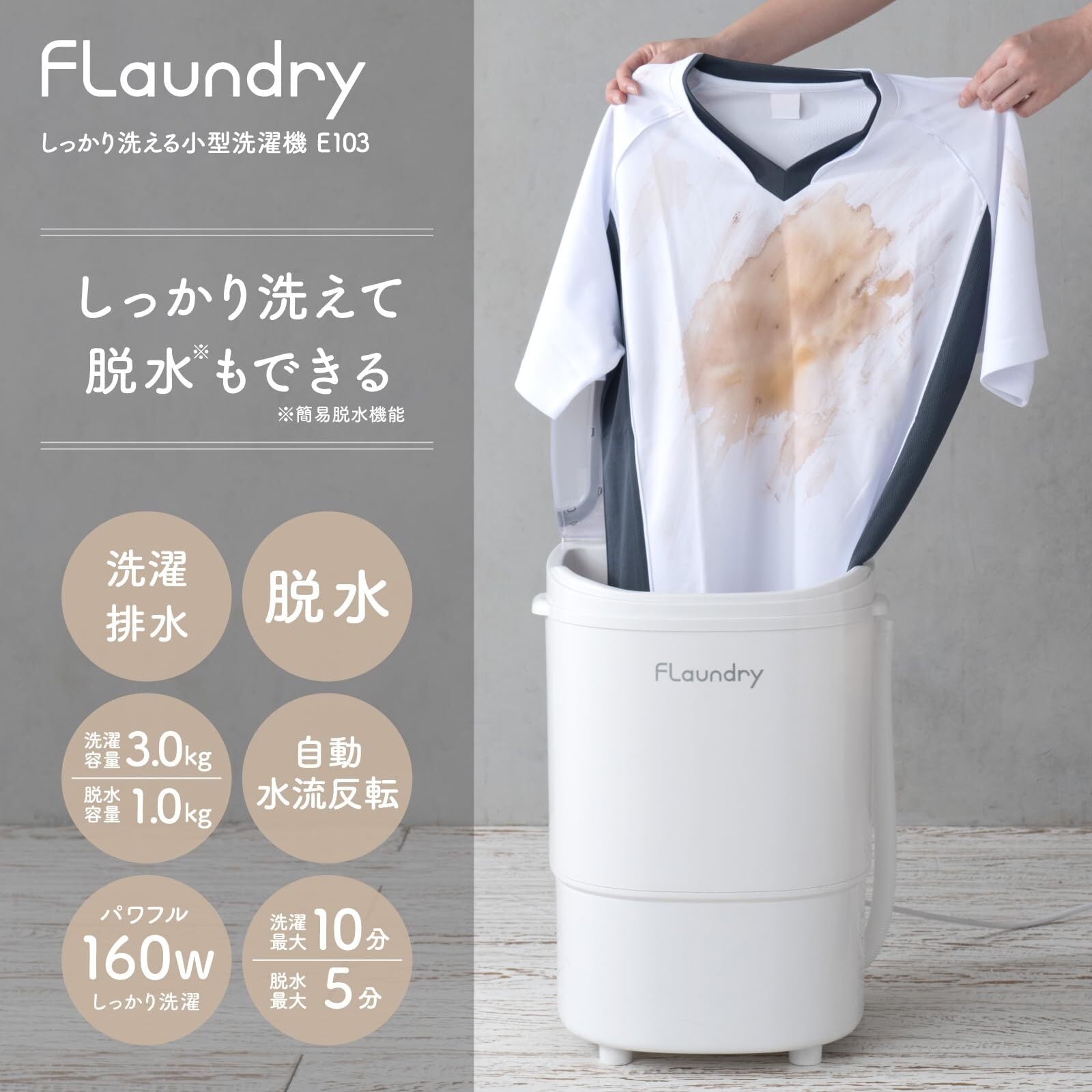 フランドリー しっかり洗える小型洗濯機 E103 簡易脱水機能付き 子供服 ペット服 靴 ユニフォーム 泥汚れ 容量 16.5L 洗濯容量 3kg 脱水容量 1kg パワフル洗浄力 持ち運び可能 半透明のふた 期間あり ダイヤ daiya