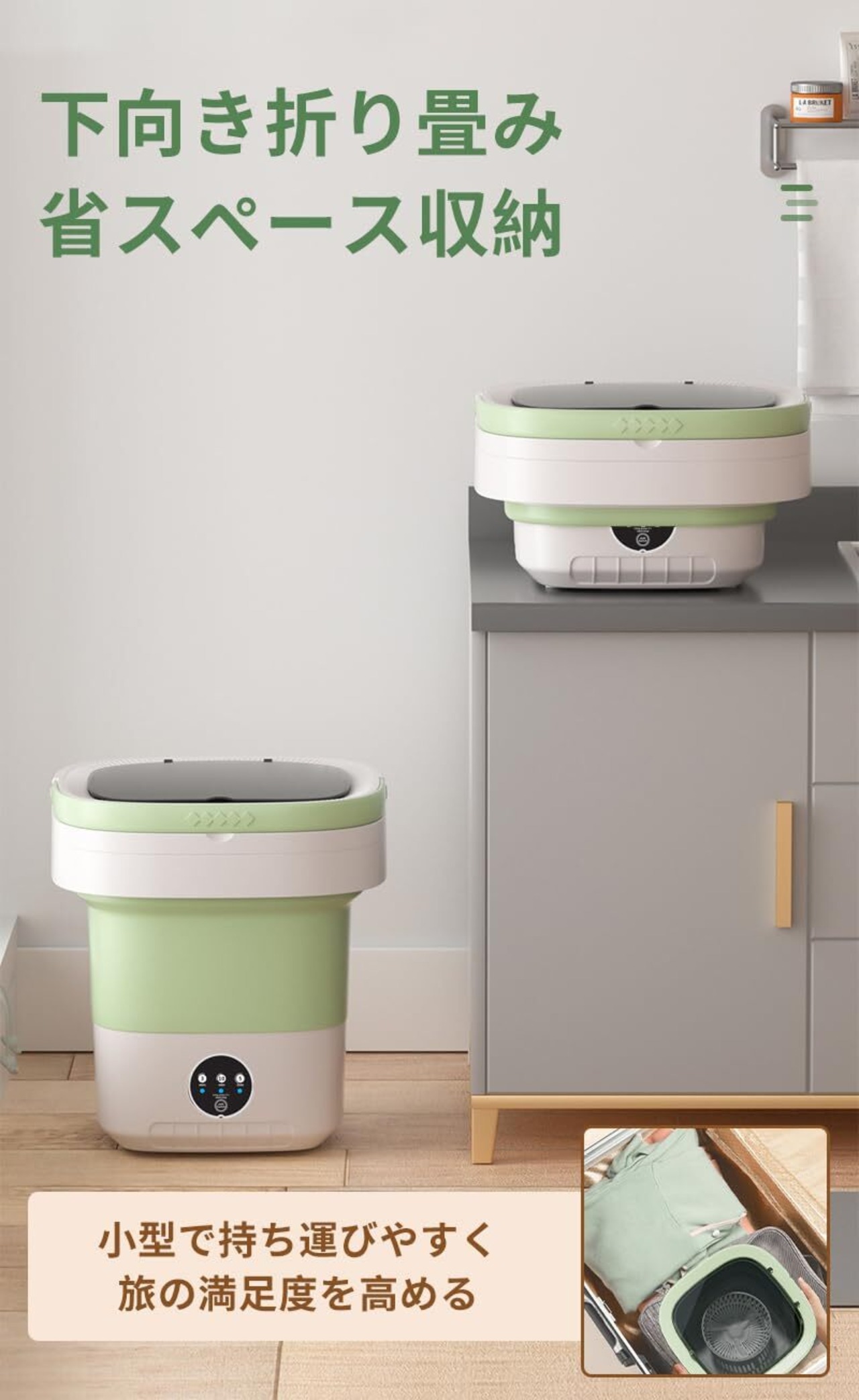 【コンパクトで持ち運び便利、小物衣類の洗濯に最適】 この洗濯機は下向き折りたたみ式の設計なので、収納スペースをとりません。全体的にコンパクトで持ち運びやすく、日常の家庭での使用や旅行時にも非常に便利で、旅行の満足度を大幅に向上させます。子供服、下着、シャツ、タオル、赤ちゃん服などの小物衣類の洗濯に適しており、小物衣類の洗濯をより専門的かつ便利にし、時間と労力を節約します。