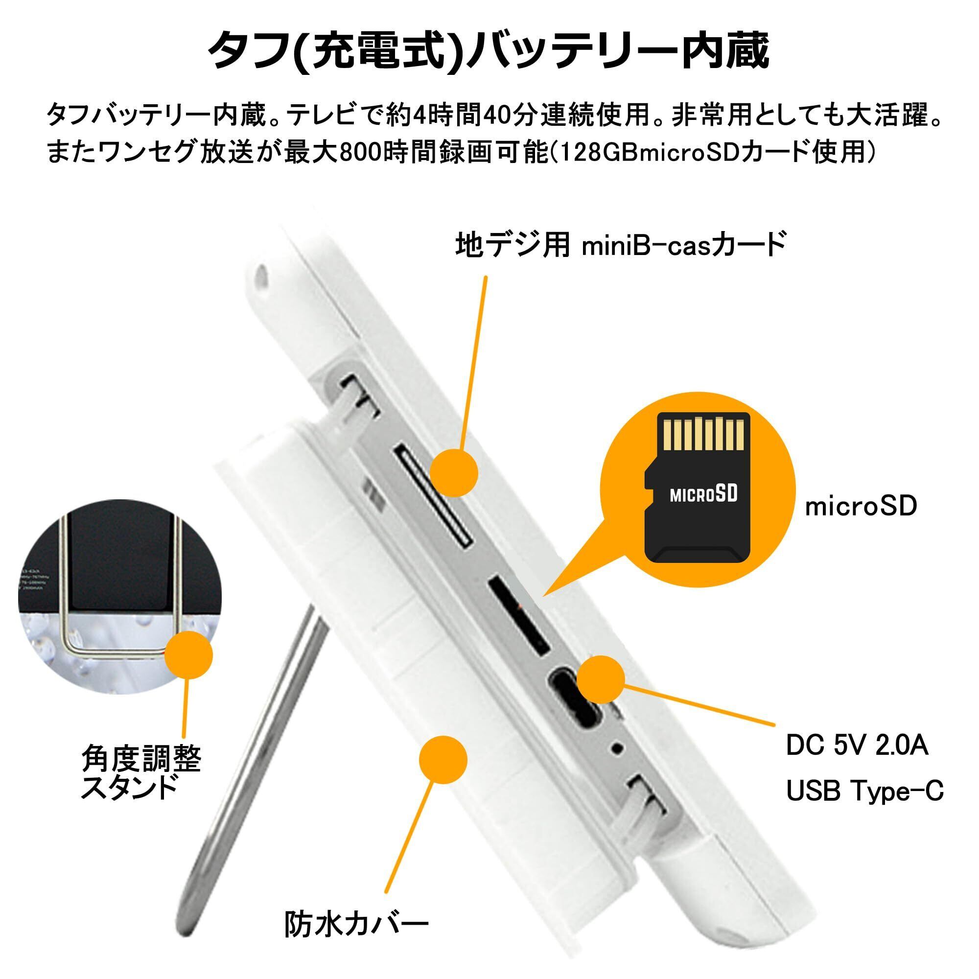 東京Deco 携帯 テレビ 7インチ 防水 FM/AM ラジオ搭載 メディアプレーヤー ホワイト IPX6 テレビ付きラジオ ワンセグ ポケット TV 防災 超軽量 携帯可能 防災グッズ ポータブル g004