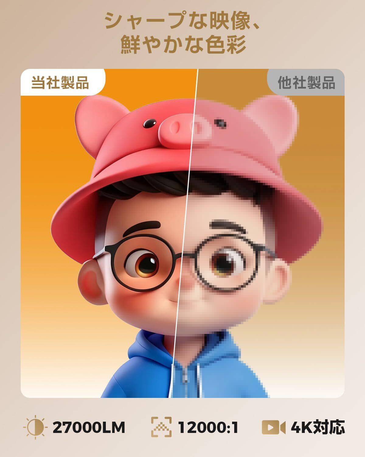 【27000ルーメン高輝度・1080P高解像度・4K対応】ホームプロジェクターの明るさは27000ルーメンに向上し、ネイティブ解像度は1080Pにアップグレードされ、NTSC色域の95%以上をカバーし、色再現性が高く、投影された画像は鮮明で、元の色に近くなります。プロジェクターはスクリーンなしで白い壁に直接投影することができ、自然な形で詳細な色を再現し、美しい画像を楽しむことができます。優れた12,000:1のコントラスト比を最大限に引き出します。4Kソースも兼用して、綺麗な再生が楽しめます。ホームシアター、スポーツ観戦に最適で、自宅でも高画質な映像を楽しめます。