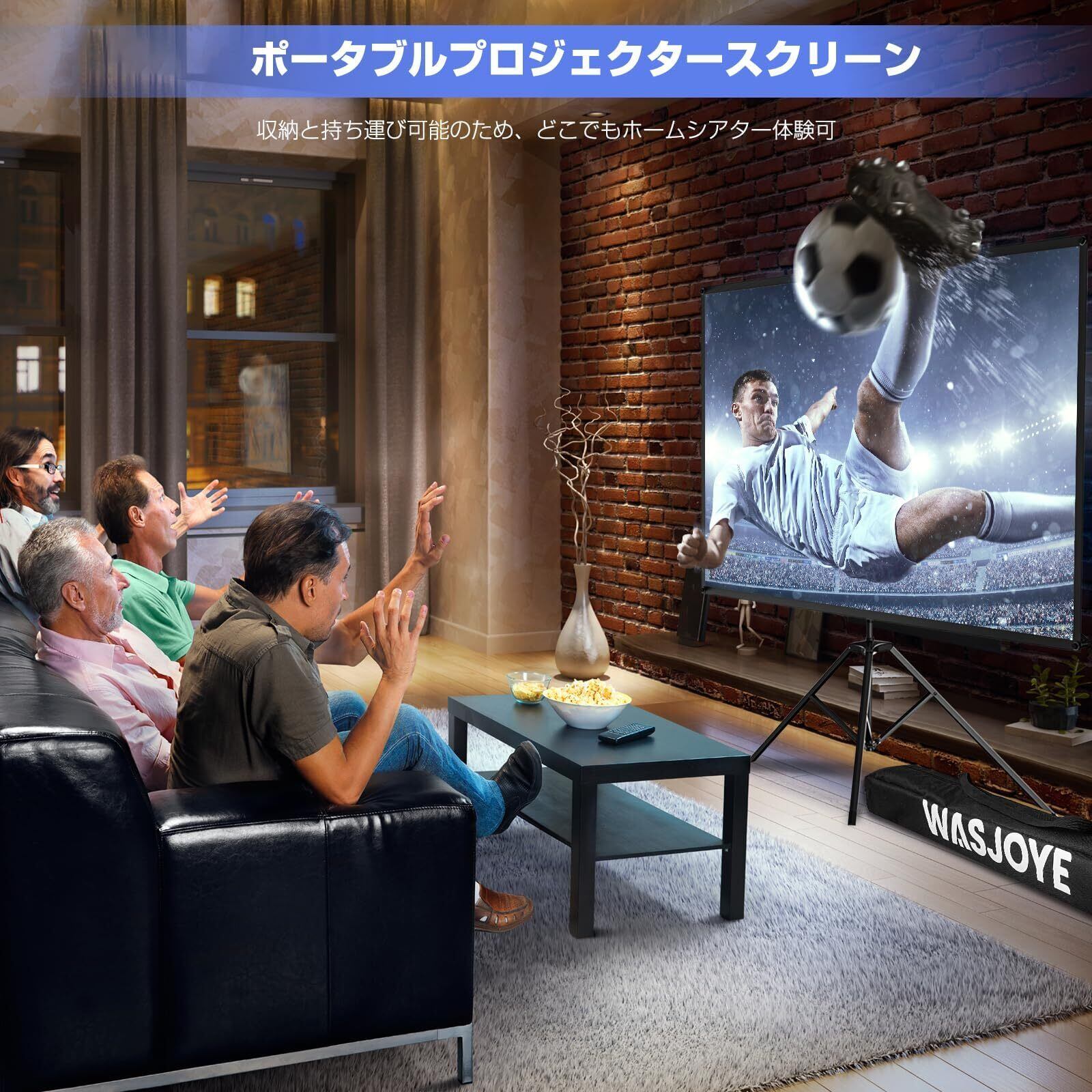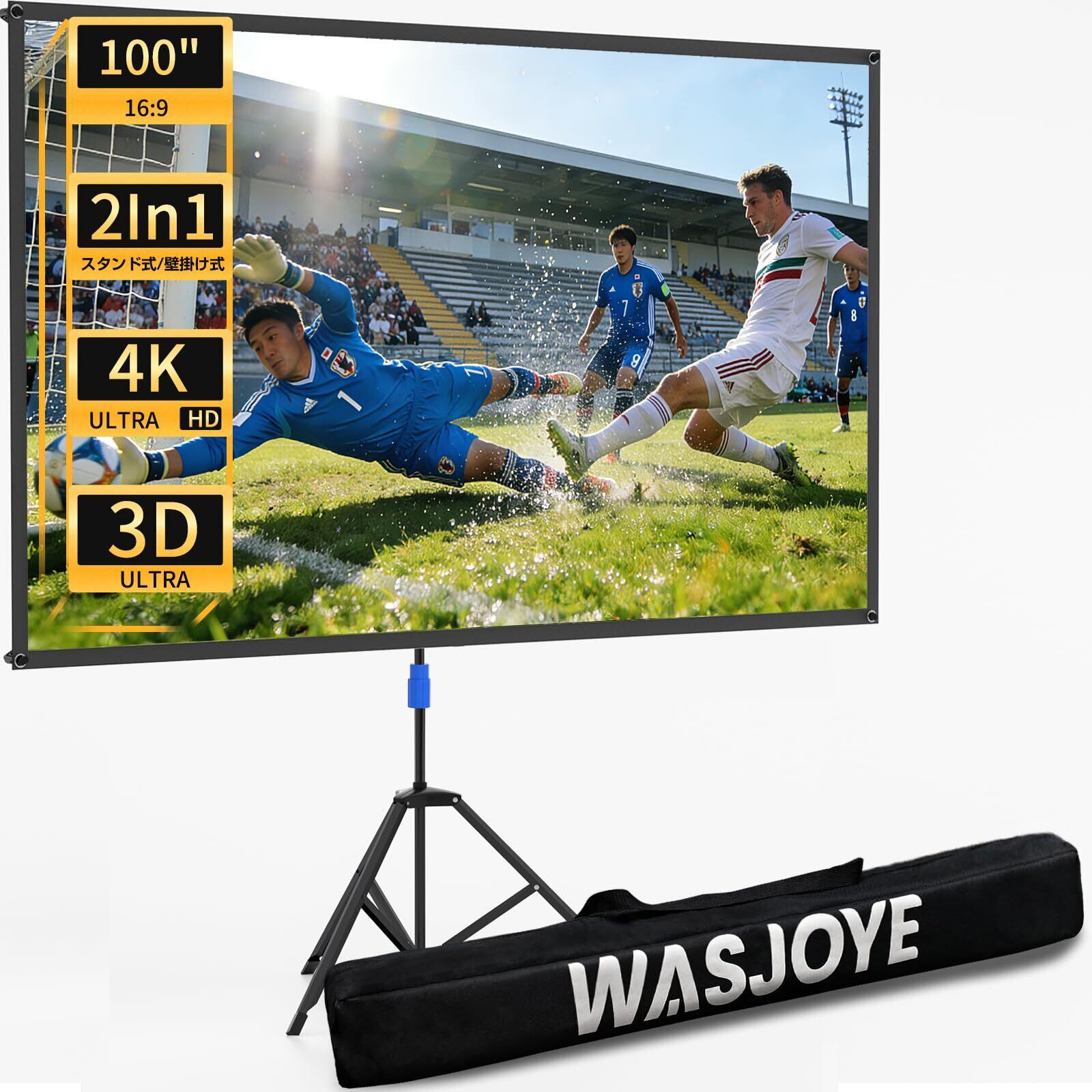 WASJOYE 100インチ プロジェクタースクリーン 自立式 三脚&壁掛け対応 16:9 高コントラスト 携帯型 収納バッグ付き コンパクト ホームシネマ・ビジネスプレゼン用 (ホワイト)