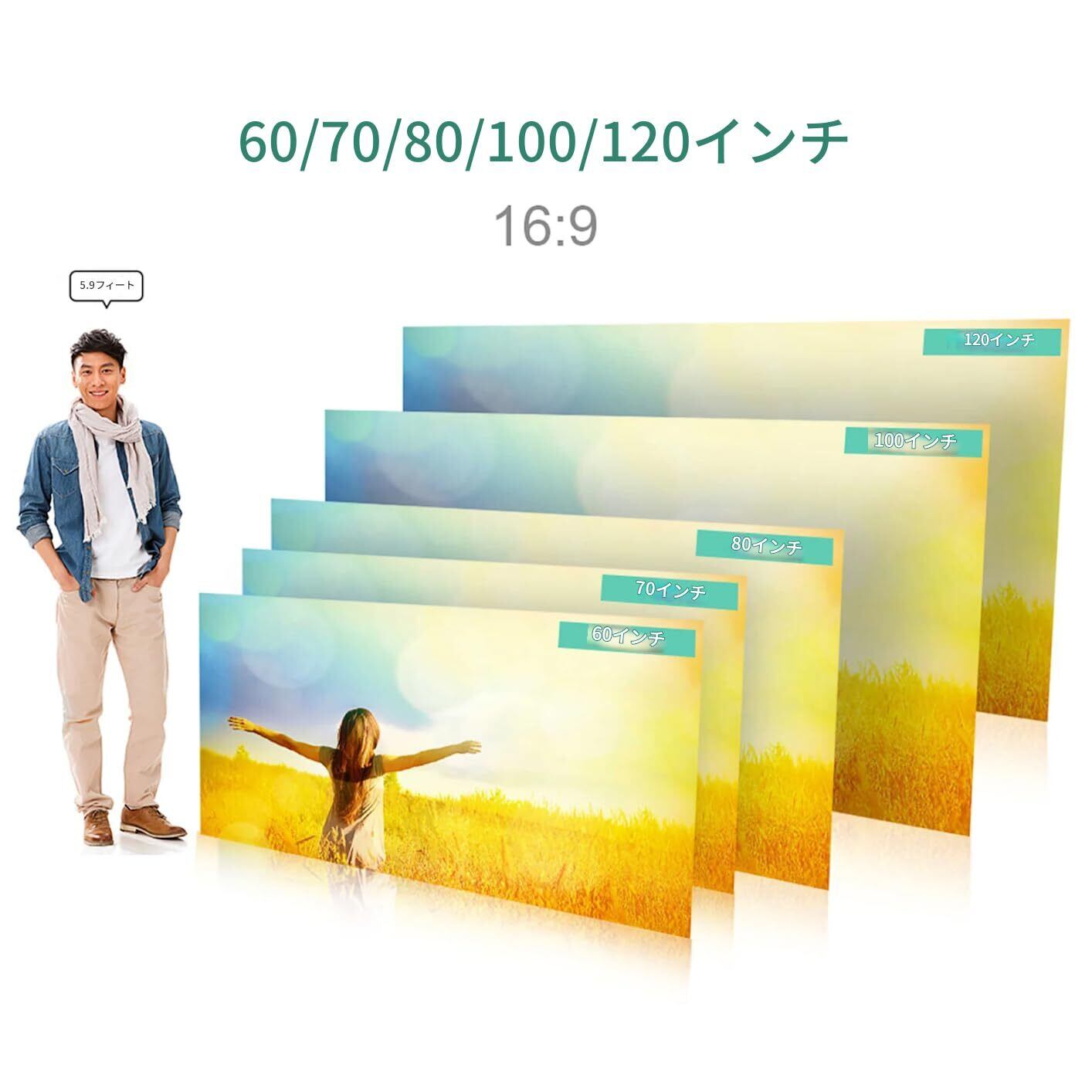 スクリーンサイズ:177×100cm/69.68×39.37インチ