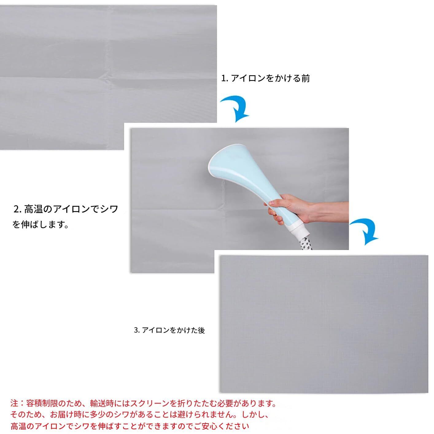 折りたたみ式なので場所を取らず、持ち運びに便利です。裏面からスチームアイロンでアイロンがけできます。