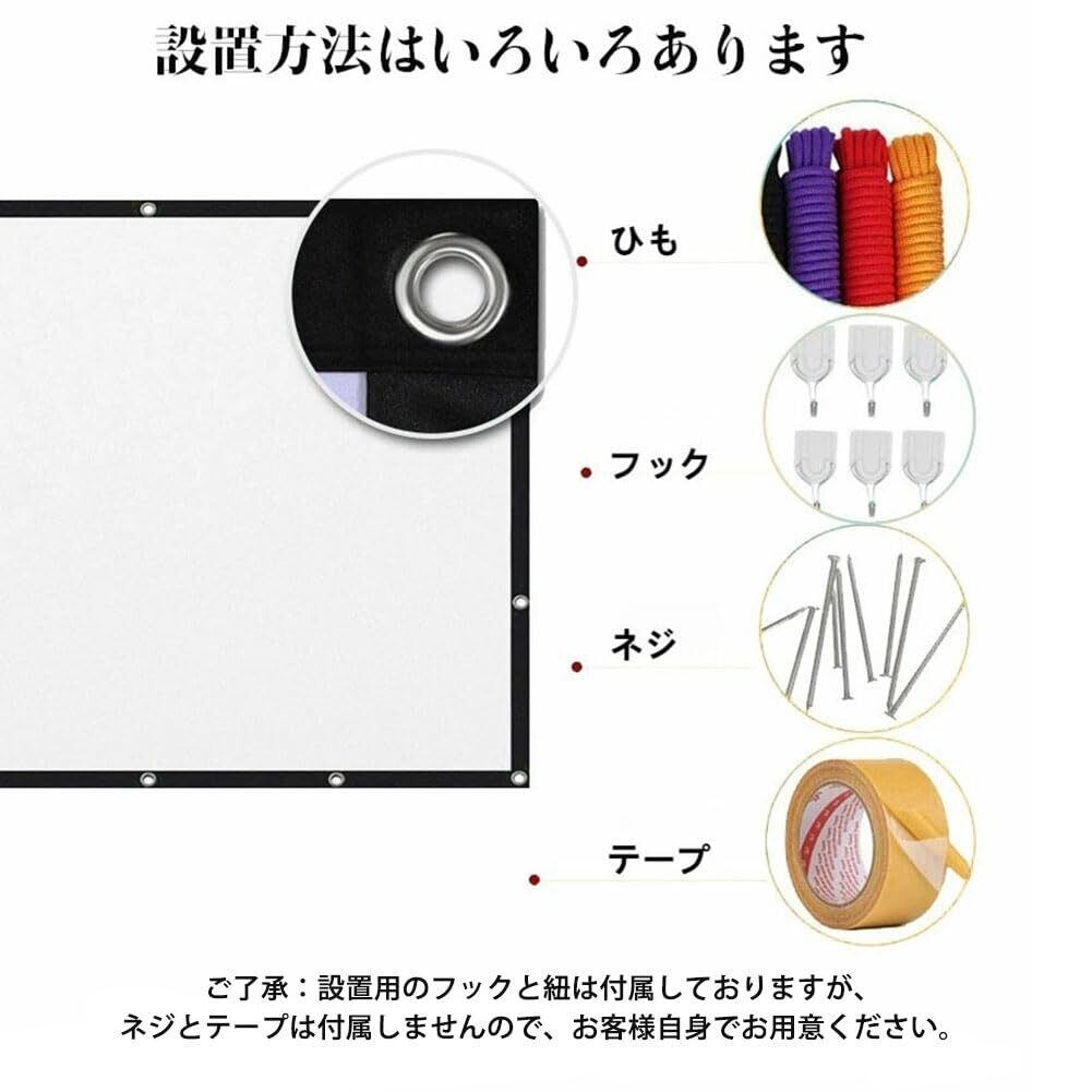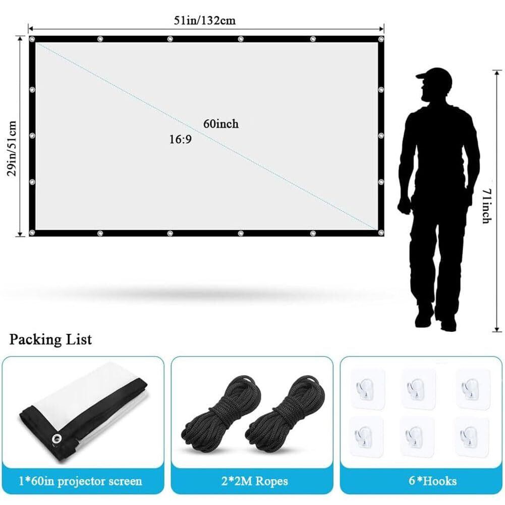 プロジェクタースクリーン 60インチ 大画面 吊り下げ 16:9 軽量 折りたたみ 持ち運び可 投影用 ホームシアター 屋内 屋外兼用 キャンプ 投射壁 会議 学園祭 簡単設置 壁掛け用専用フック付き