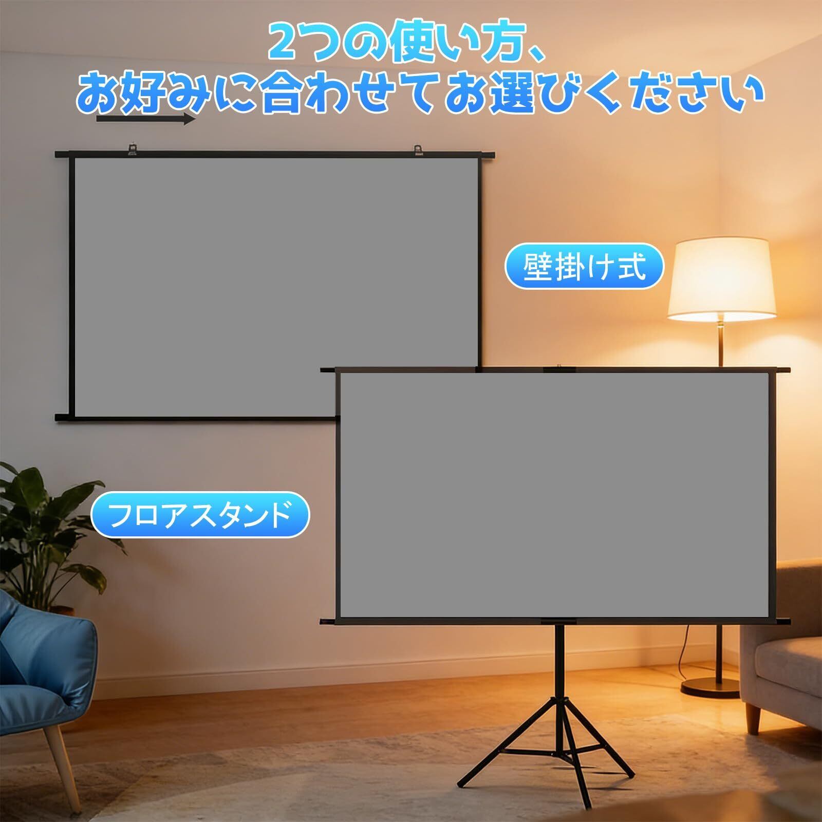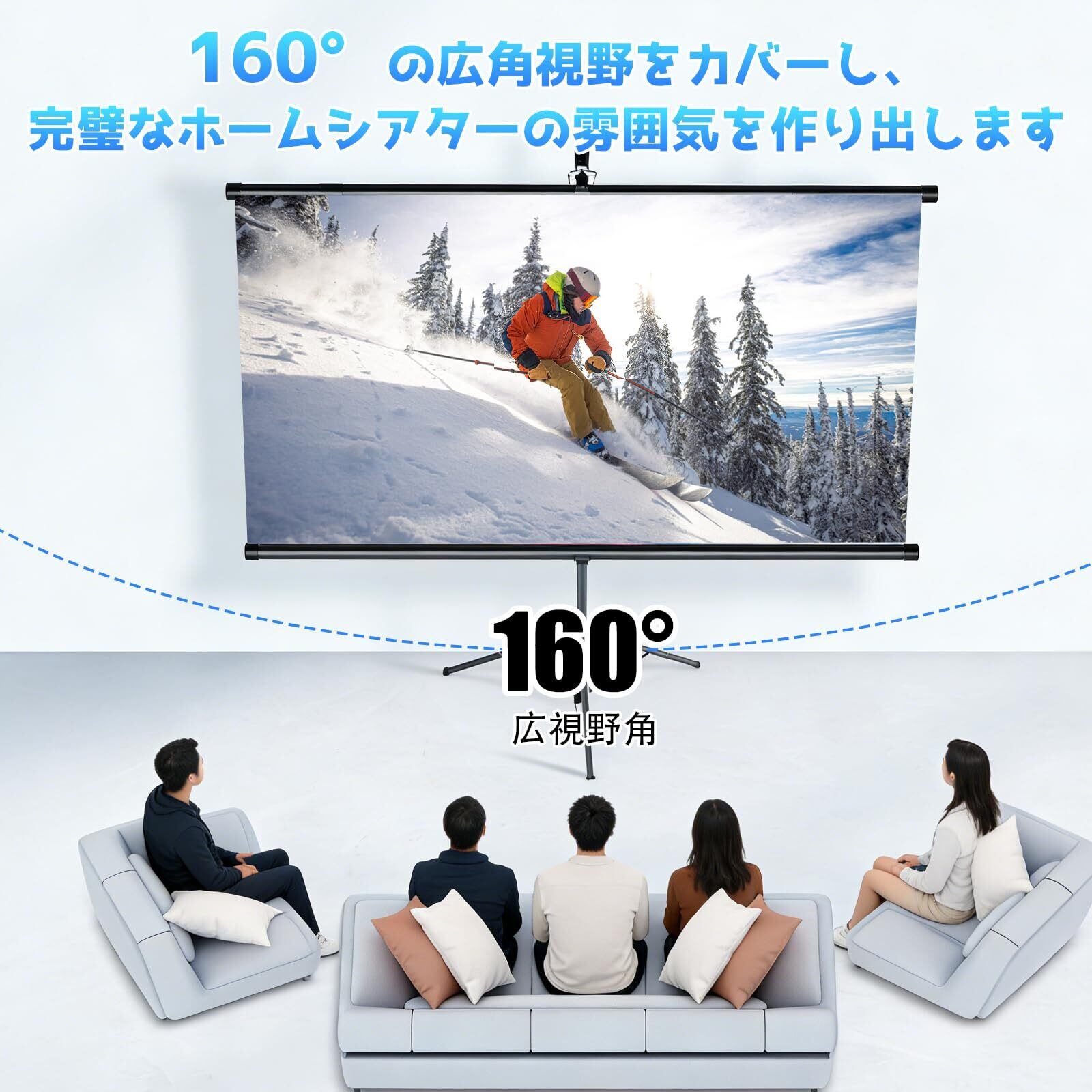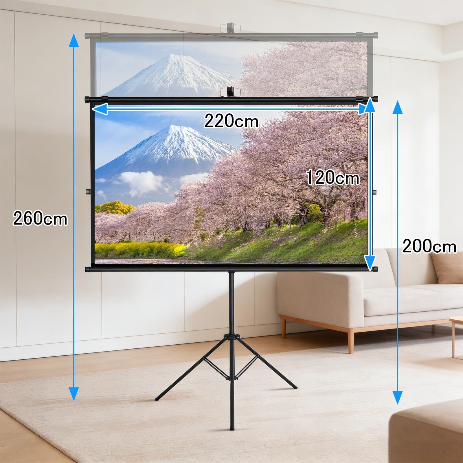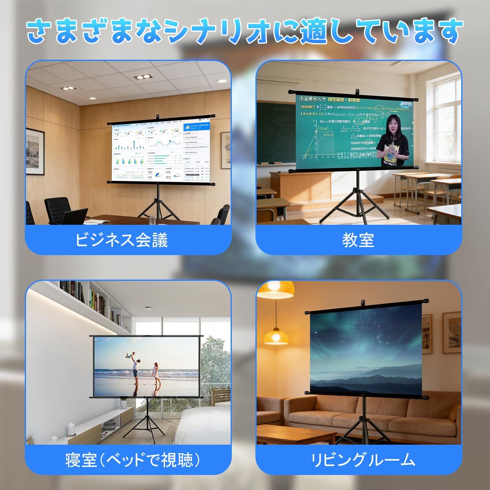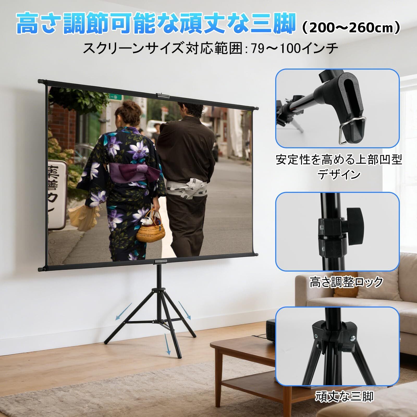 プロジェクタースクリーン プロジェクター用 スクリーン 自立式 壁掛け対応 軽量 屋内屋外兼用 ホームシネマ ビジネス用 収納便利 三脚式 プレゼンテーション アウトドア 家庭用 小型 持ち運び (100インチ アンチリンクルスクリーン)