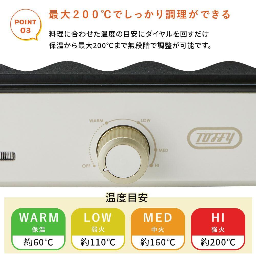 【幅広い料理をお任せ!】火力は保温~200℃まで無段階で調節可能。ふたも付属しているため、焼くだけではなく蒸し料理など、さまざまなレシピでお使いいただけます。