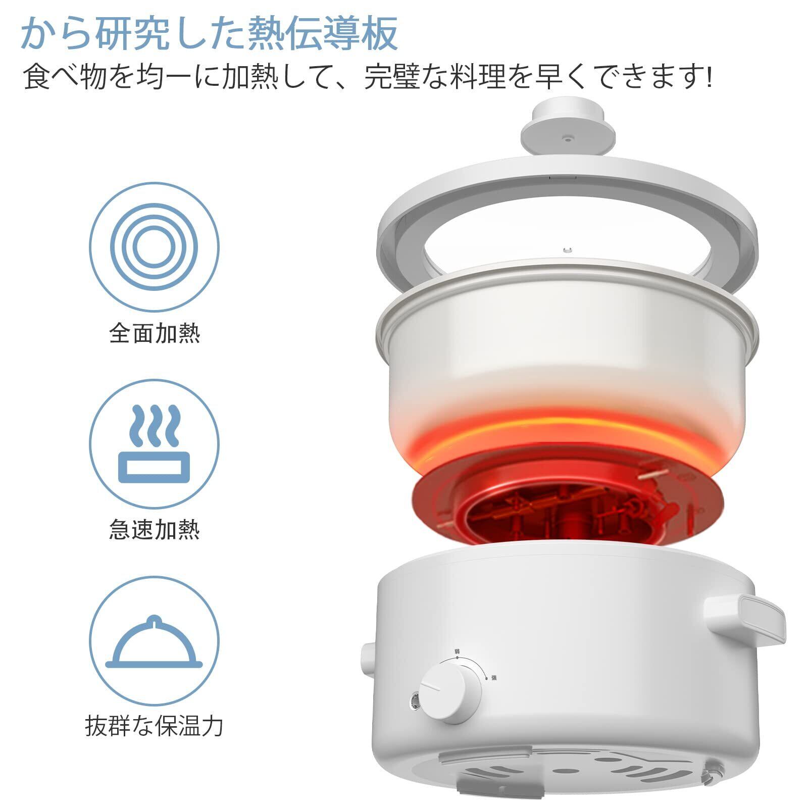 【急速加熱と高い安全性】olayks 小さい電気鍋には研究した熱伝導板を採用し、食品を均等に加熱し、加熱も長時間に持続できます。従来のストーブより短い時間で調理し、さまざまなおいしい料理を簡単に調理できます。また、過熱保護機能を備え、鍋が乾式燃焼および過熱状態になると、自動的に電源が切れるようになっています。皆さんの安全を確保し、ご安心に使用してください。