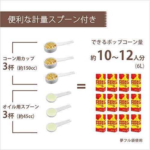 専用の計量スプーン付属。面倒な分量を測る作業がなく、誰でも簡単にポップコーンが作れます。