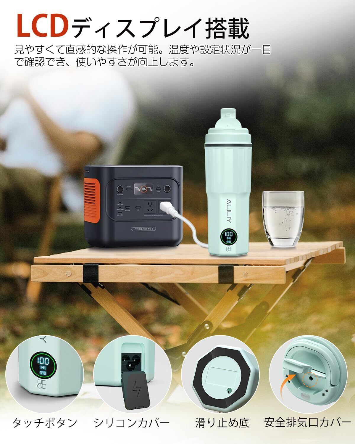 【3.0時代へ進化!小型電気ケトルで自由な水生活を】個人向け・専用のALILIY ポータブル電気ケトル。日常生活に適切な水分補給は体の調子を整え、集中力を高め、健康的な生活を支えてくれます。1.0時代の家庭用電気ケトルは自宅のみで使用、持ち運びに不便。また2.0時代のワンタッチ式小型ケトルは小型で便利ですが、水を100℃だけ沸騰させて、温度調節ができません。今度3.0時代スマート携帯電気ケトルは利用し、個人向けの水生活を楽しもう!