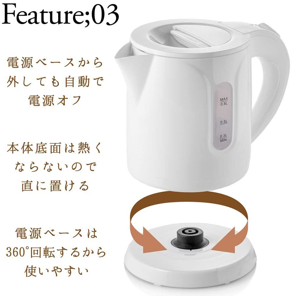 電気ケトル 0.8L おしゃれ コンパクトケトルコーヒー約5杯分 自動電源オフ 空焚き防止 セーフティ機能搭載 コードレス テーブル直置きOK (ブラック)