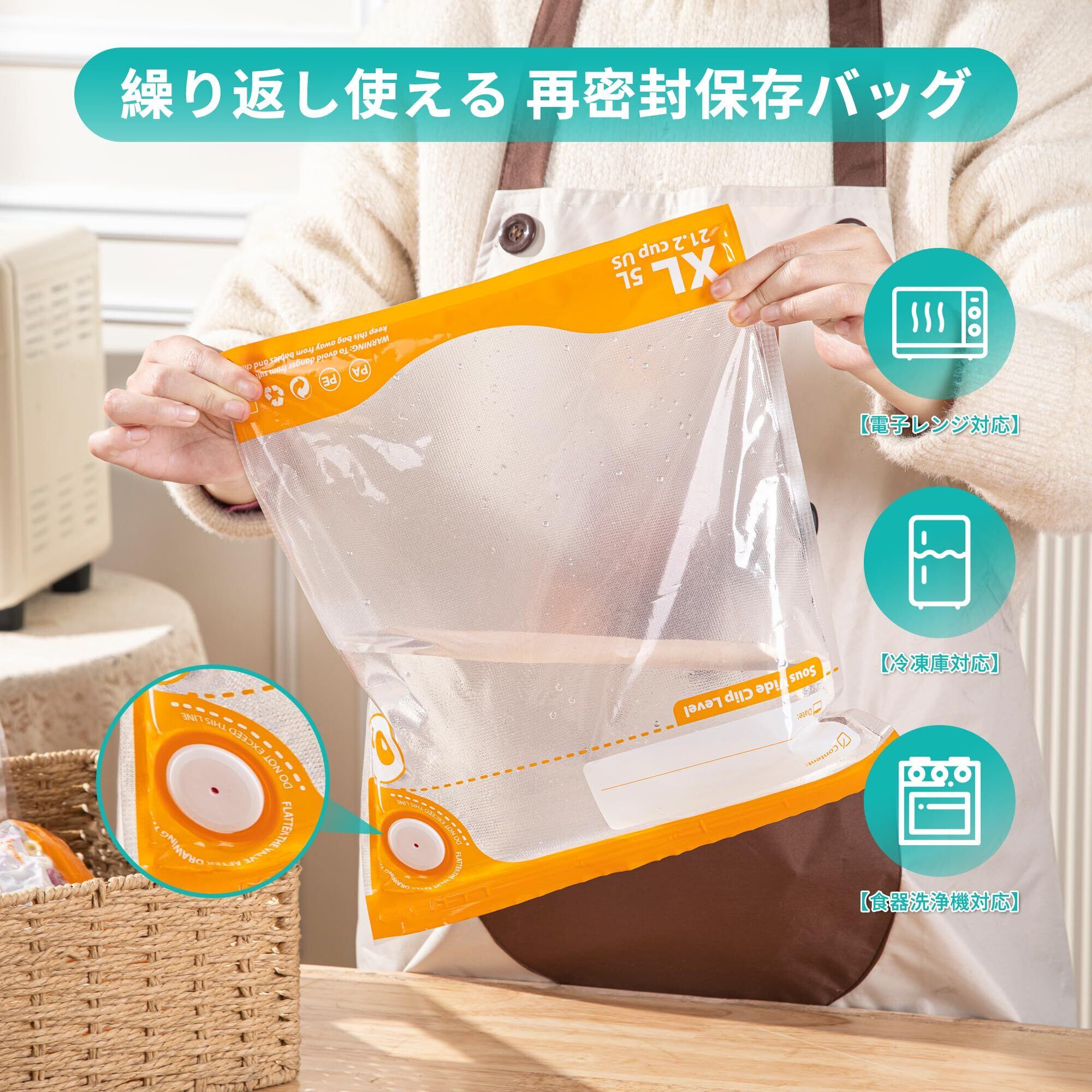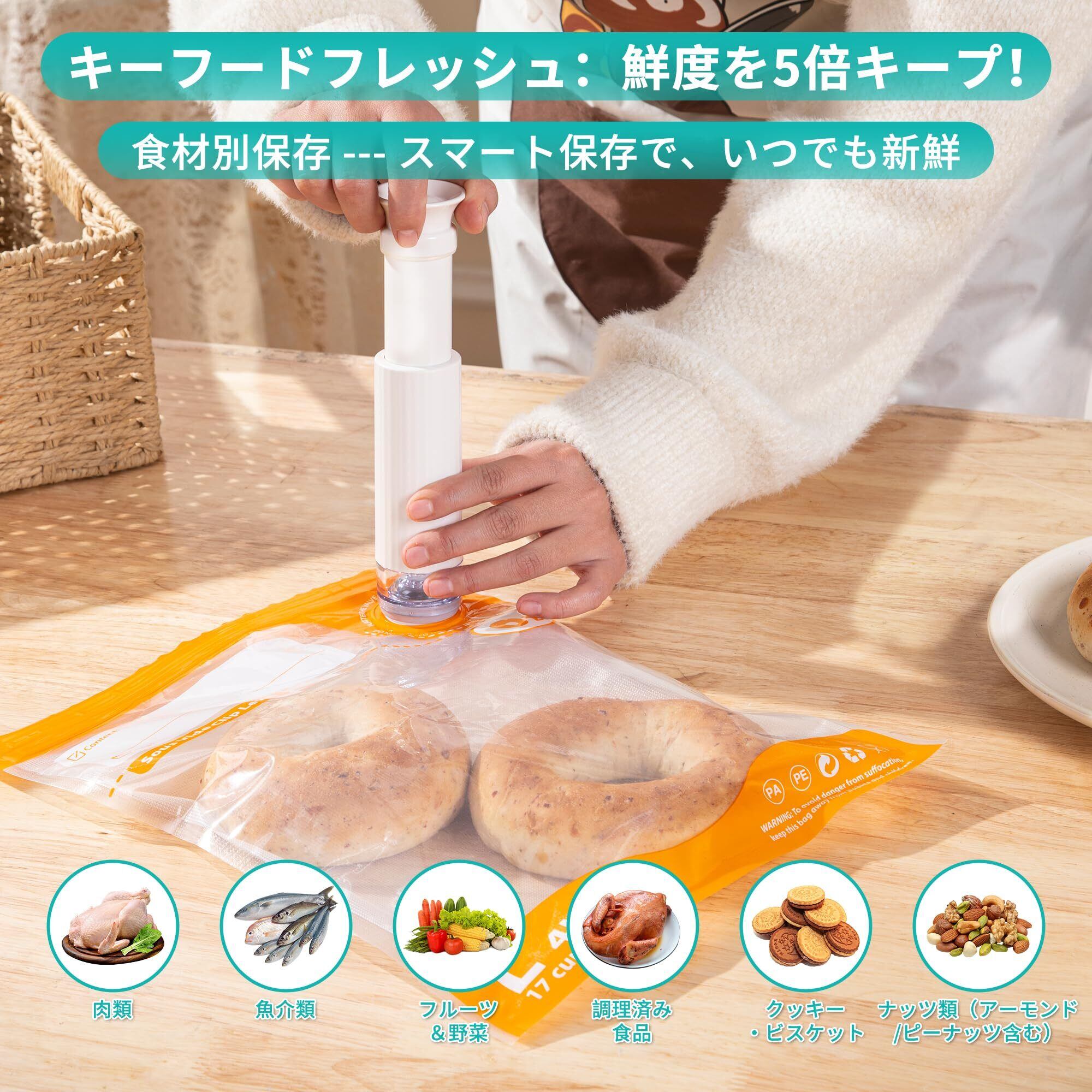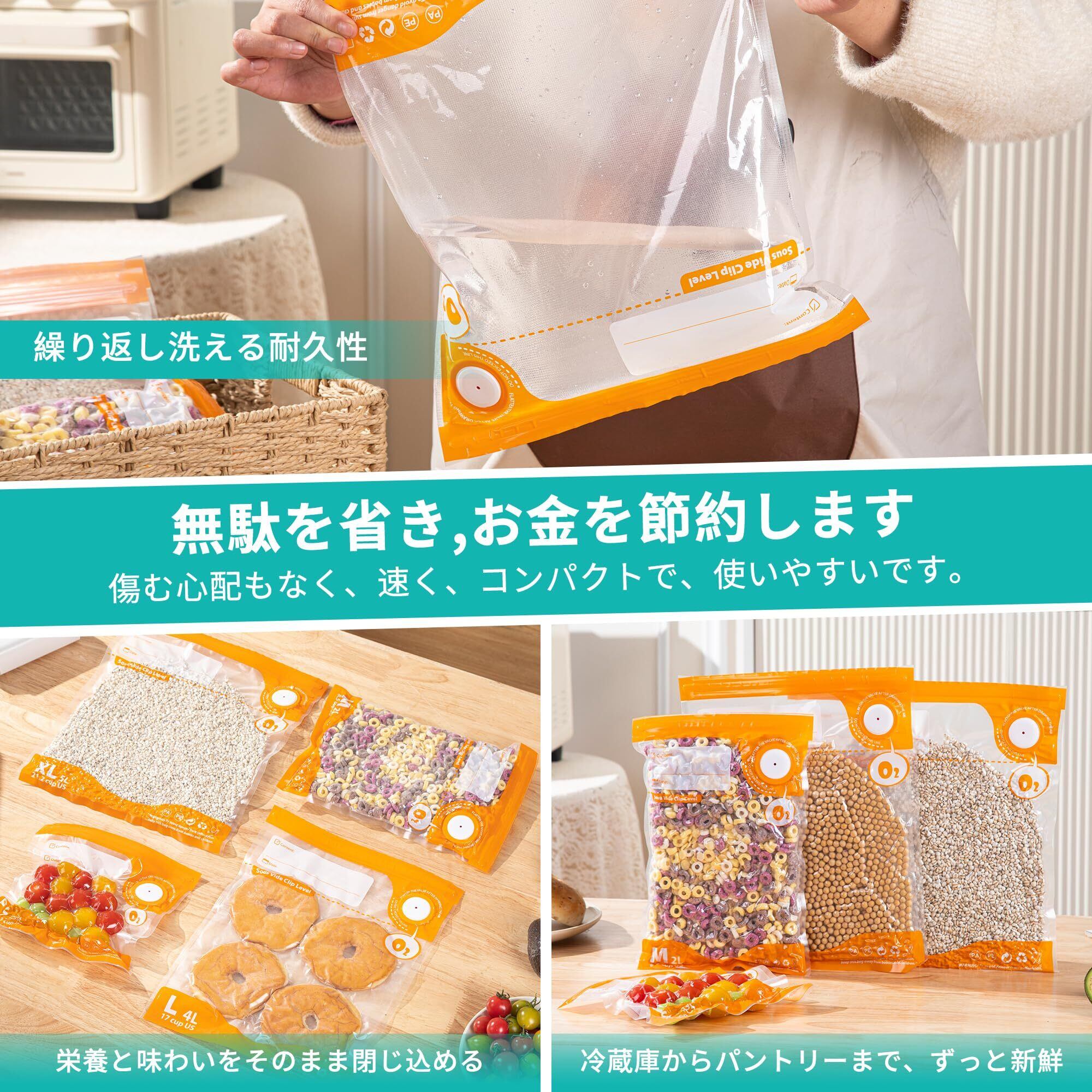 【完全真空密封】再利用可能真空シーラーバッグ,真空状態で食品の劣化・酸化・腐敗を防止,食材の鮮度を3~5倍に延長,色・味・風味をまるで新鮮な状態のまま保存。