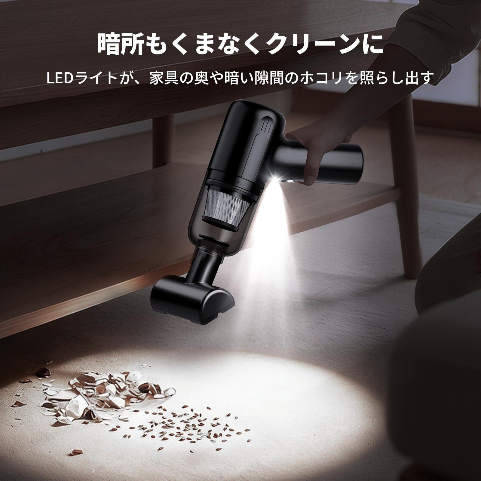 【スマートチップが実現する、賢い・静かな・ストレスフリーなお掃除】内蔵のスマートチップが、ほこりの量を感知し吸引力を自動で最適調節、効率的な部屋掃除を実現。無駄な電力消費を抑え、効率的な清扫を実現します。過熱・過負荷保護で安心の充電式 掃除機です、モーターと製品の安全性・長寿命を堅牢に守ります。この「賢さ」は、使い心地の細部にも活かされています。70dB以下の低騒音設計と、暗がりを照らすLEDライトを備え、早朝や深夜はもちろん、ソファの下など見えにくい隅々の清扫も、家族を気にせず確実に行えます。最大25分の連続駆動で、ワンルーム全体を楽々カバーします。
