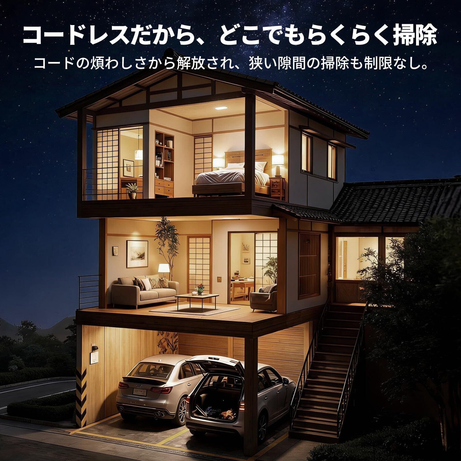 特徴 コードレス, 低騒音, 充電式, 車内清掃対応, 軽量