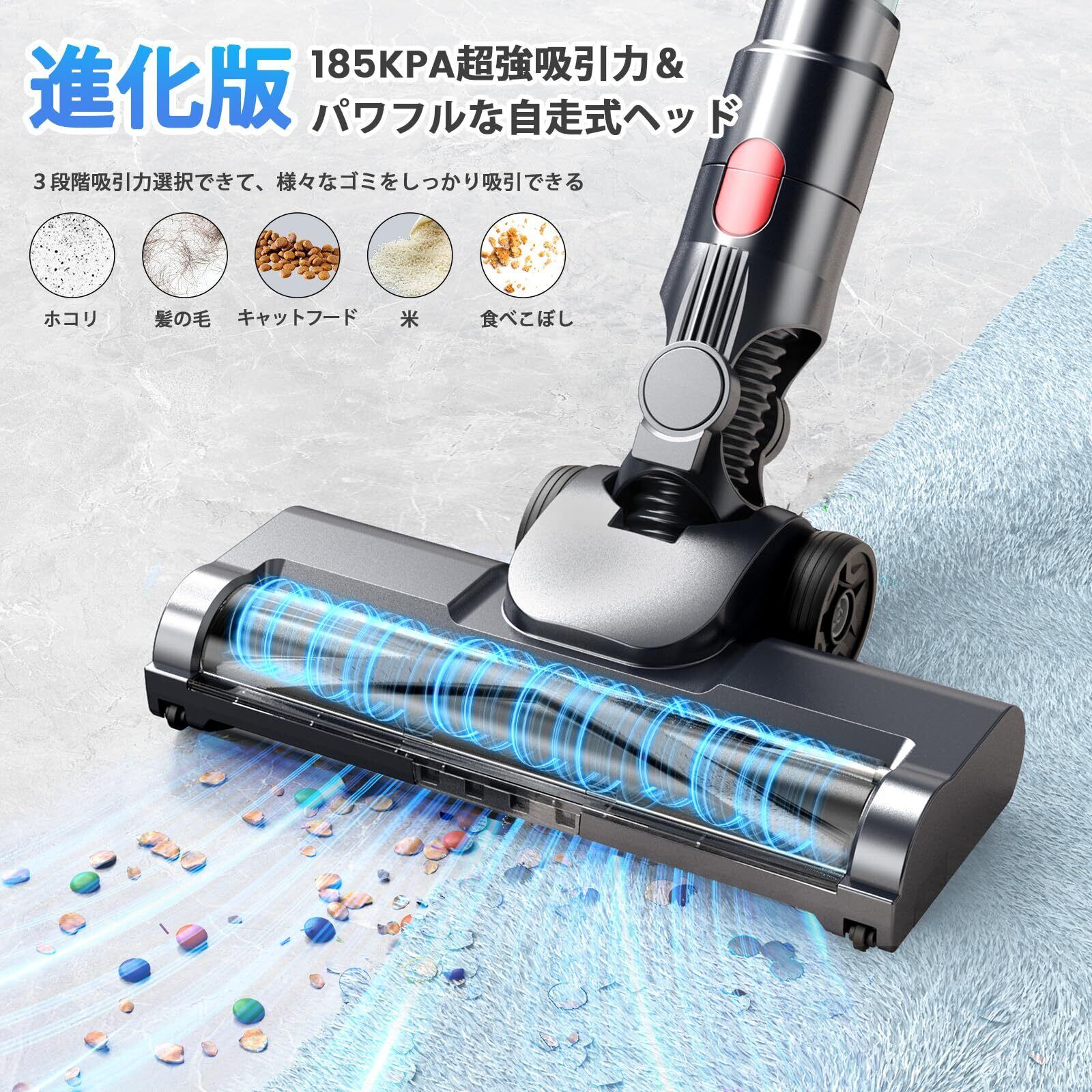 【185KPa超強吸引力&AIゴミ感知センサー×3段階吸引力&史上最軽量】2026革新モデル3001掃除機はは市販最先端の550Wブラシレスモーターを採用し、吸引力が185KPa以上に達し、従来の掃除機より66%アップ!遠心分離サイクロン方式を採用されて、ゴミと空気をしっかりと分離し、強力な吸引力が持続します。床面の微細なゴミからペットの毛、大きなホコリまで吸引可能です。また、独自開発のAI自動制御システムで、スマートな吸引力コントロールが、省エネでありながら、ハイパワーと低騒音を見事に両立させました。掃除機はワンタッチでエコ・標準・強力3段階吸引モードを簡単に切り替えられ、ゴミの大小と種類によって、自由に選択でき。尚、軽量設計なので、自走式ローラブラシと組み合わせ、女性でも片手で力を入れずにぐんぐん進み、毎日のお掃除が楽々に!