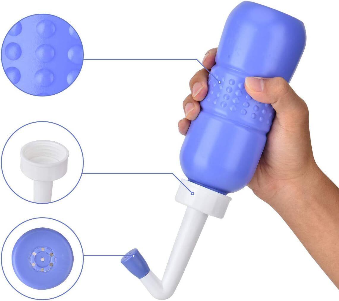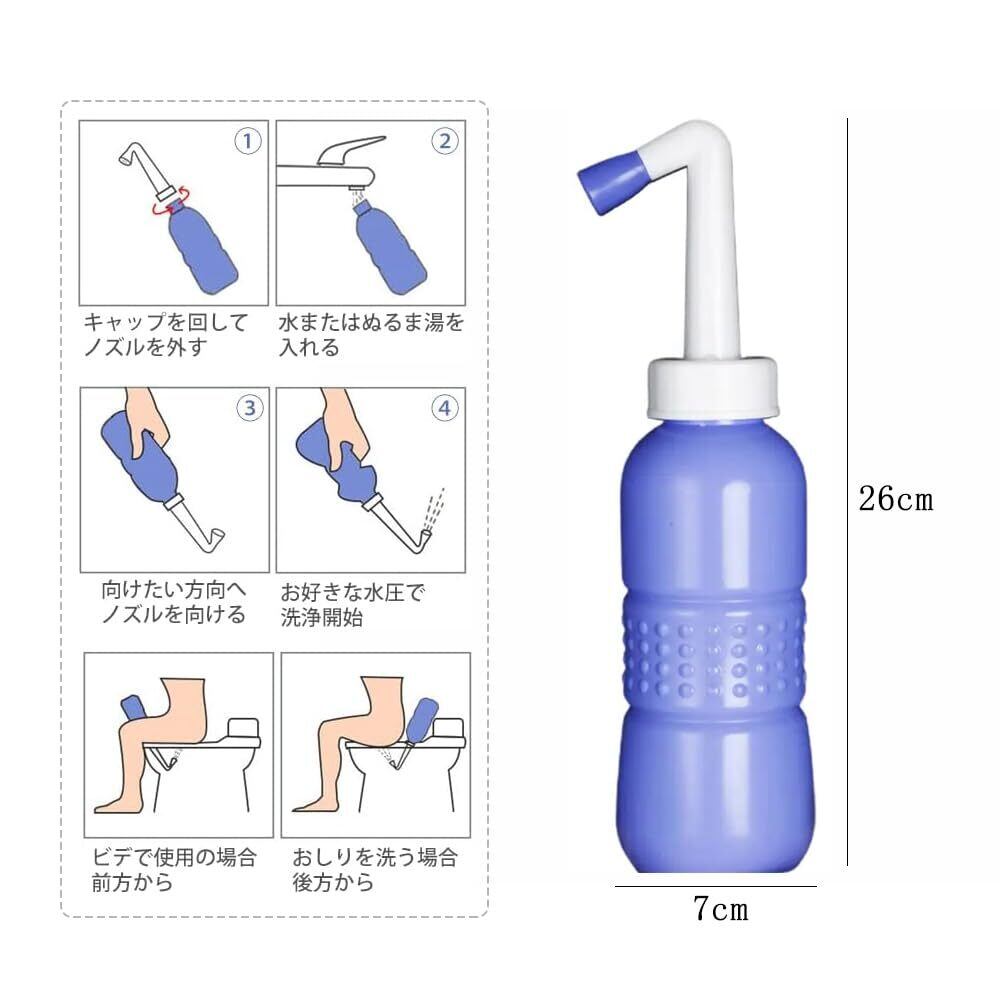 携帯温水洗浄便座 ハンディおしり洗浄器 500ml大容量-軽量 手動タイプ 介護 災害 キャンプ 旅行 トイレ用 男女兼用 オムツ (ブルー)