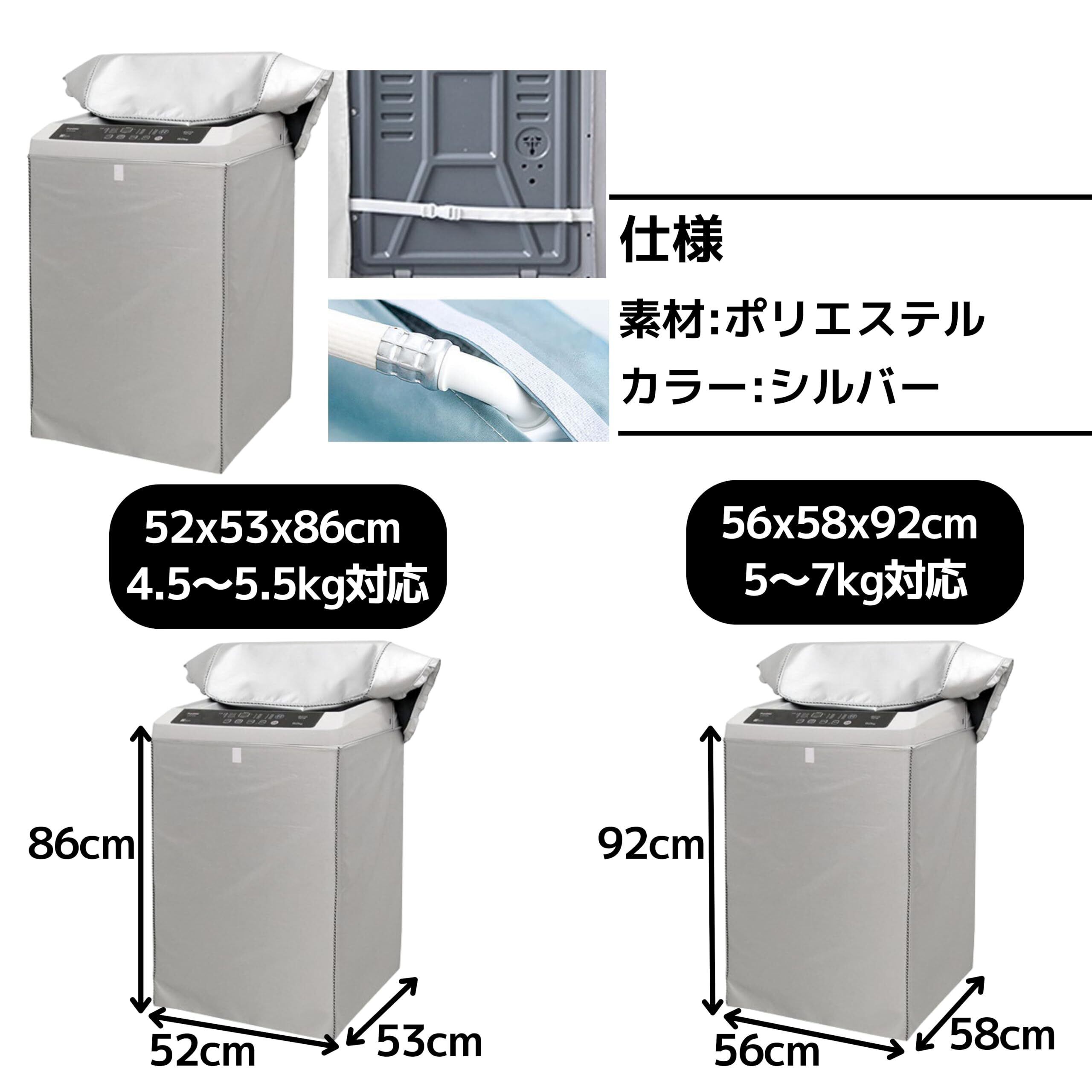 【熱を吸収しにくい銀色デザイン】 銀色のカバーは高温環境でも熱を吸収しにくく、洗濯機を高温から守ります。また、4面カバー (上部・前面・左・右)の設計により、洗濯機が高温になりにくく、最適な状態を保ちます。