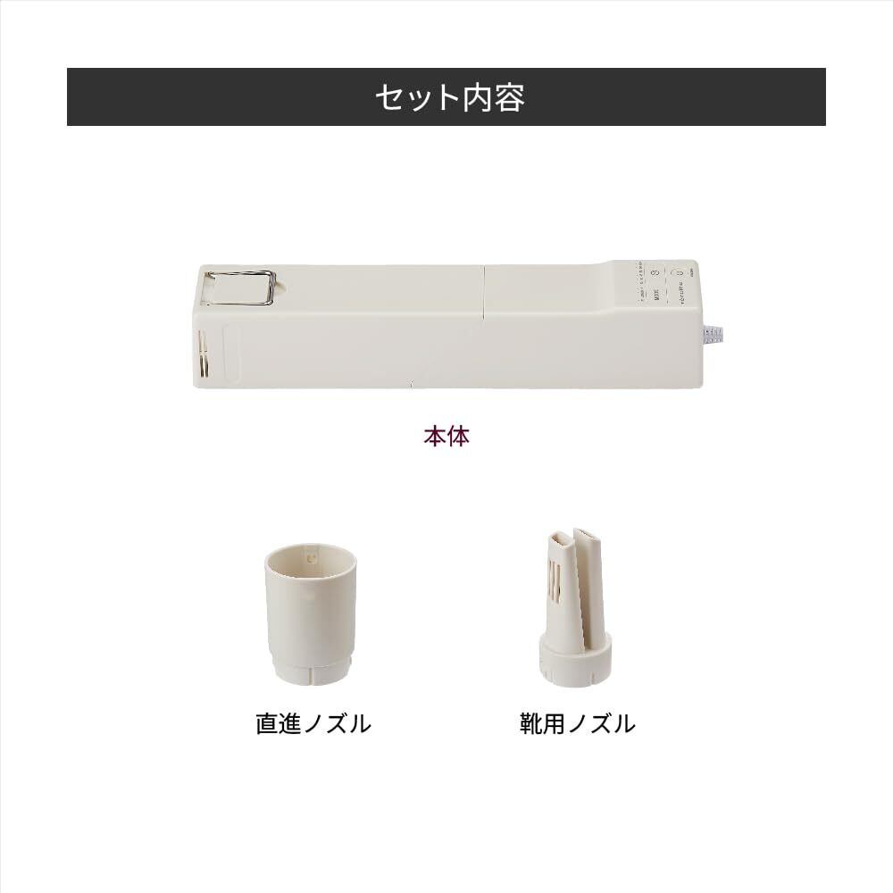 [靴や衣類の乾燥にも使える] [靴用ノズル]が付属しているので、湿ったスニーカー、子どもの上履きなどの乾燥にも使えます。また、吹出口の向きを調節すれば、ちょっとした部屋干し衣類の乾燥にも使えます。
