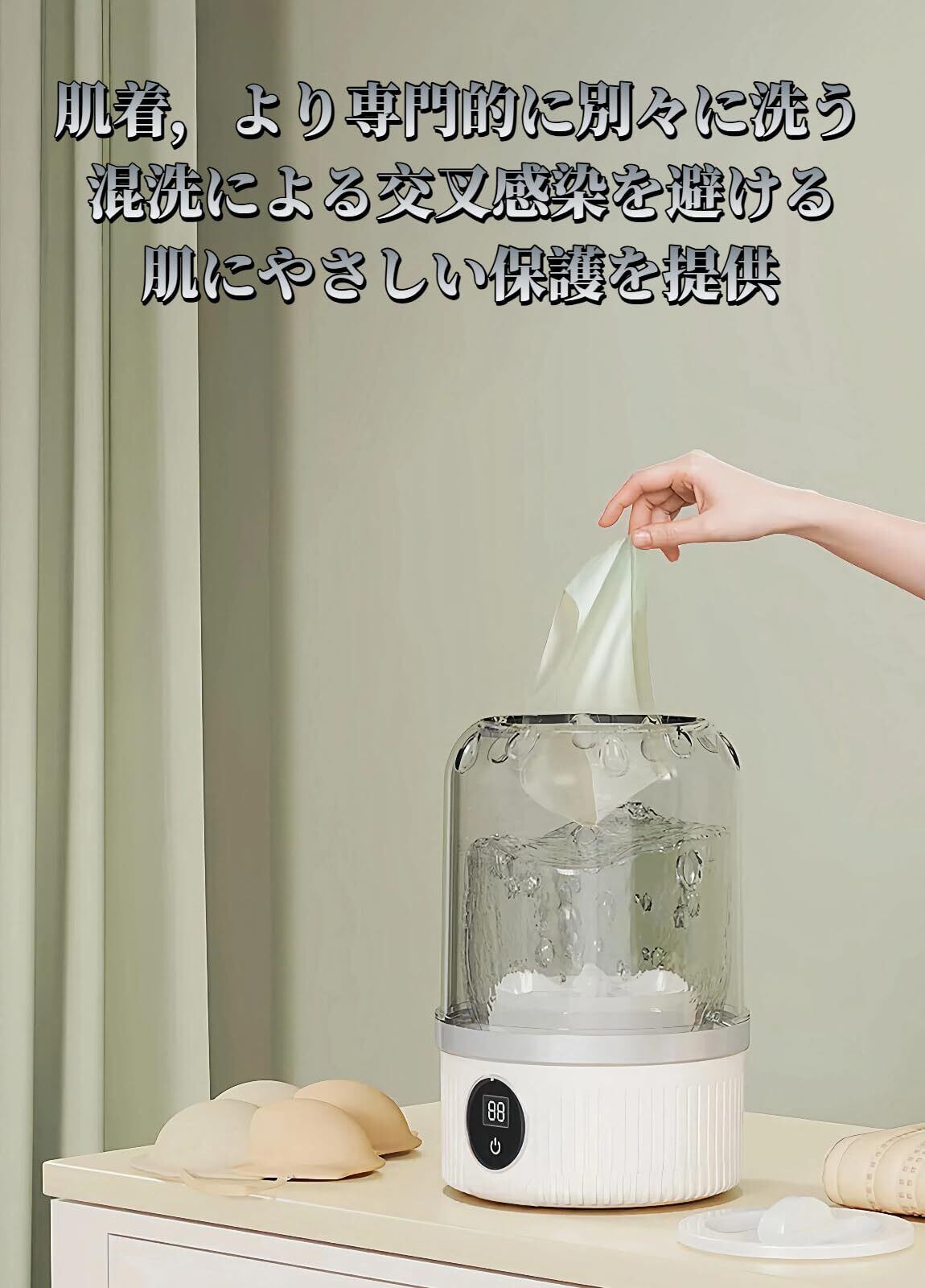 【コンパクト&ワイヤレス使用可能】FJHYRSMY 小さい洗濯機のサイズは13*13*20cm、重さは590gで、小さくて持ち運びしやすいです。1500mAhの電池を内蔵し、USB充電式で、ワイヤレスで使用でき、とても便利です