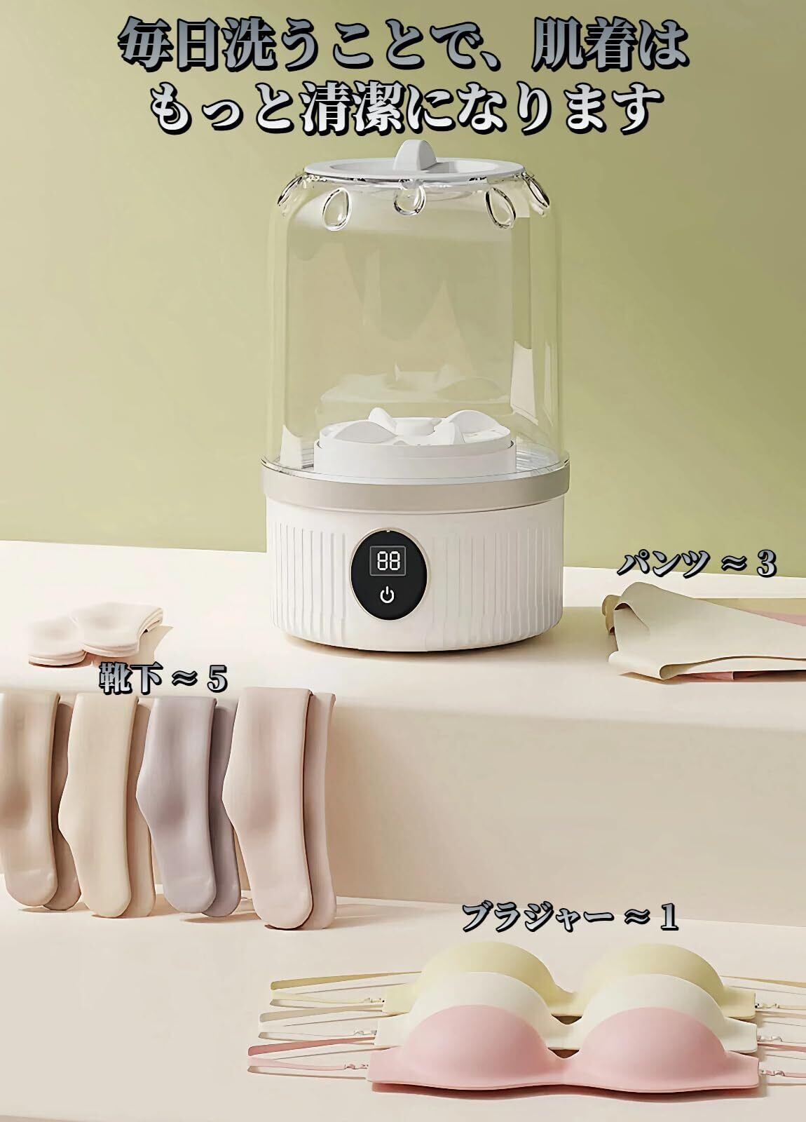 ミニ洗濯機 小型 ポータブル洗濯カップ 下着洗濯機 USB充電式12.5*12.5*20.5cm 正逆転可能 ベビー服/下着/靴下など 簡単操作 自宅用 出張用 旅行用